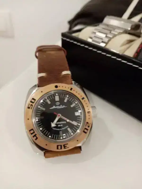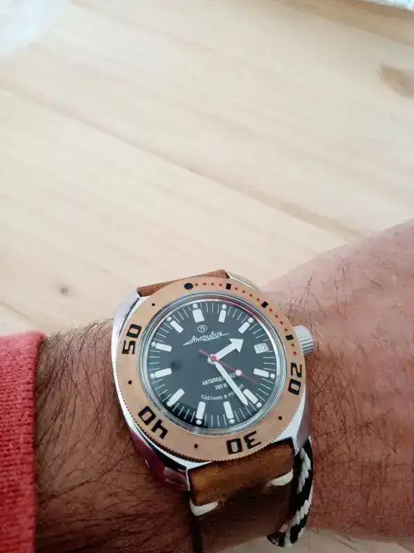 Hola a todos, gracias a un forero excepcional he podido adquirir este Vostok que me tiene enamorado, ahora mismo teniendo piezas de mucho más valor puedo asegurar que la satisfacción en su presencia, porte y orden de marcha es de lo mejorcito que tengo. Opiniones para Vostok hay de todos los colores, pero la verdad, según mi criterio, creo que es difícil superar un estándar tan alto de calidad/precio y añadiría exclusividad porque la verdad, en la calle, veo más Omega y Rolex que Vostok. En fin, que después de recibir tan preciado tesoro, me he dado cuenta que le va de perlas al ganchito de mi hijo. Disculpar el tocho y la broma de "relojes para pelirrojos", he pensado que era una buena manera de llamar la atención y así, poder presentar mi último reloj o el reloj de mi hijo, ¿a que hace juego con su pelo? Un abrazo!!!!