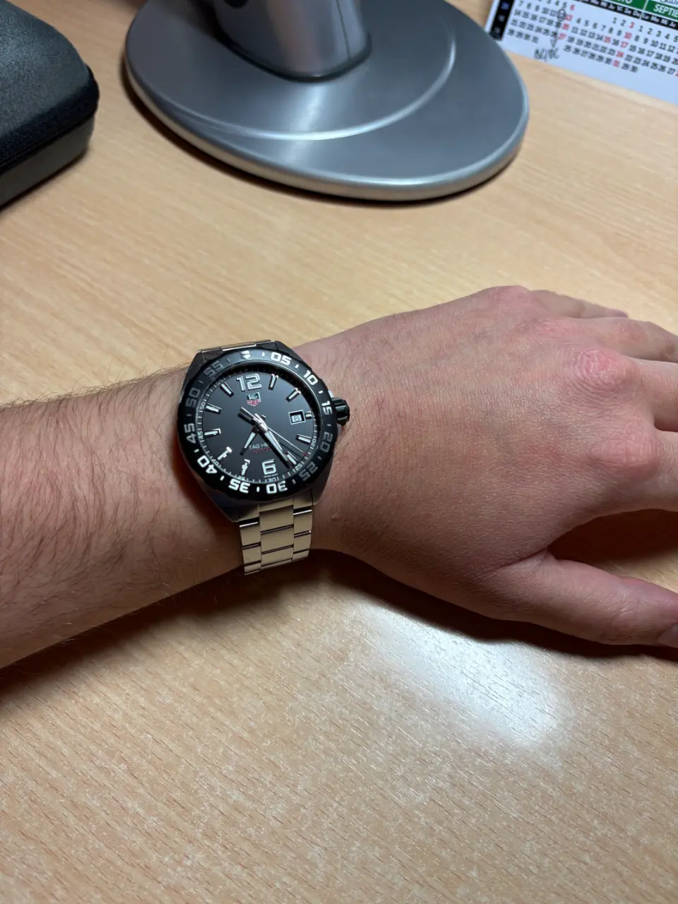 No importa tanto el diámetro como la longitud del reloj y el Spirit tiene unas asas muy largas. Otro punto aparte es que el bisel es muy fino y la esfera aparenta ser más grande, respecto por ejemplo, al TAG que ya tienes. Yo probaría con 37 o 40 mm, los relojes más grandes creo que pierden el balance entre todos sus componentes, puesto que estos no escalan junto con el diámetro y en general terminan siendo relojes con las esferas muy vacías.Creo que me voy a decantar por el Spirit con esfera azul, ¿pero de 40 o 42 mm.? Sigo teniendo mis dudas, ya que el Tag Heuer Fórmula 1 que tengo es de 41 mm. y no me parece excesivamente grande (adjunto imágenes). Pienso que el de 40 mm. no me lo veré bien. Vivo en Soria y aquí no hay ningún concesionario Longines, (lo compraría online) bueno y de ninguna marca "premium".