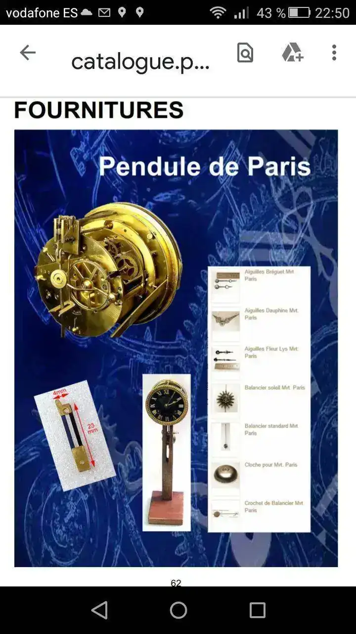 Ahora mismo estoy restaurando un mecanismo paris, que me llego sin pendulo, y he llegado ha hacerlo funcionar poniendole varios pendulos y encontrando la medida y la osciulacion que necesita.
