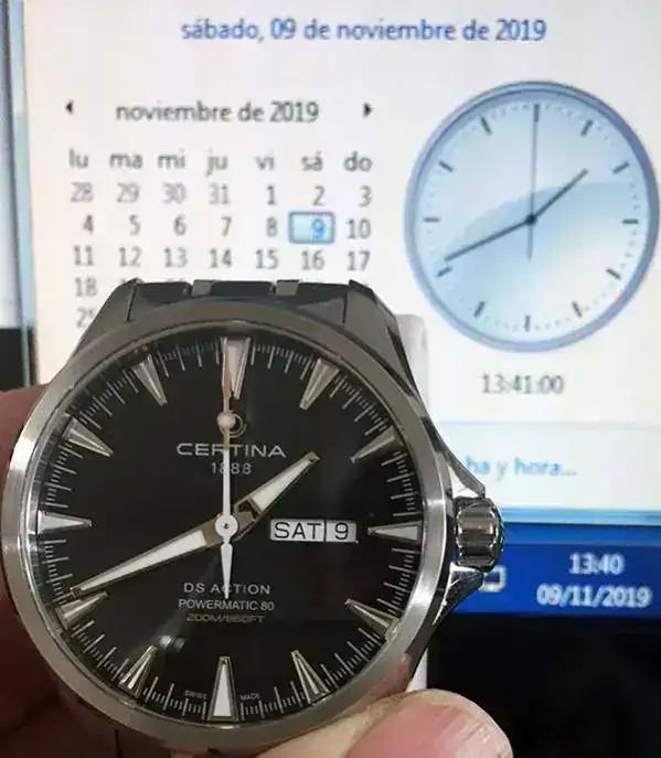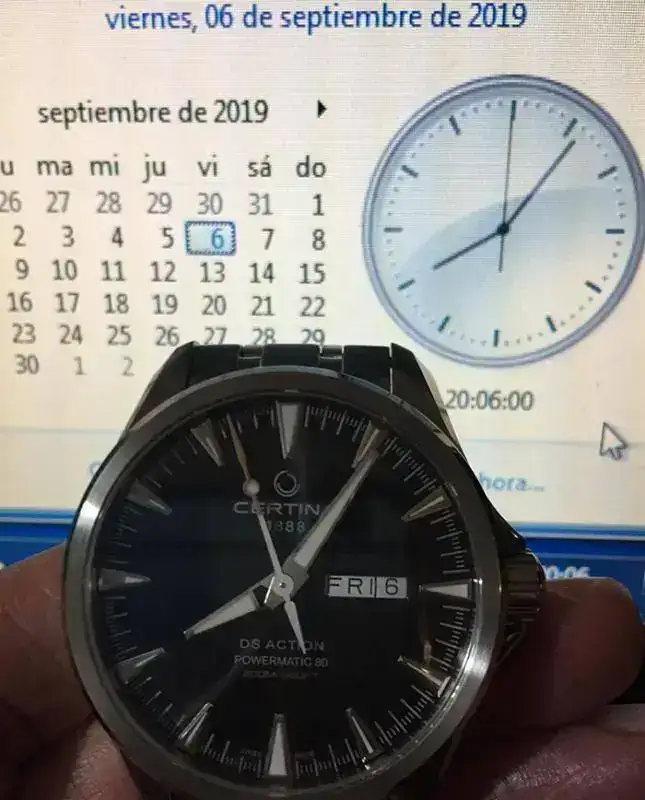 Esos 8 segundos que le falta al segundero de mi Certina para llegar a las 12 son los mismos 8 segundos que me dejo atrasados el relojero que me lo puso en hora cuando lo compre.