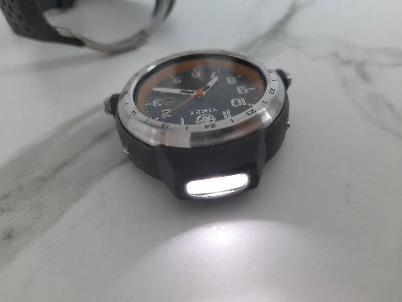 Es al menos curioso ya que tiene, a parte de la retroiluminación Indiglo típica de la marca, una linterna con batería independiente.