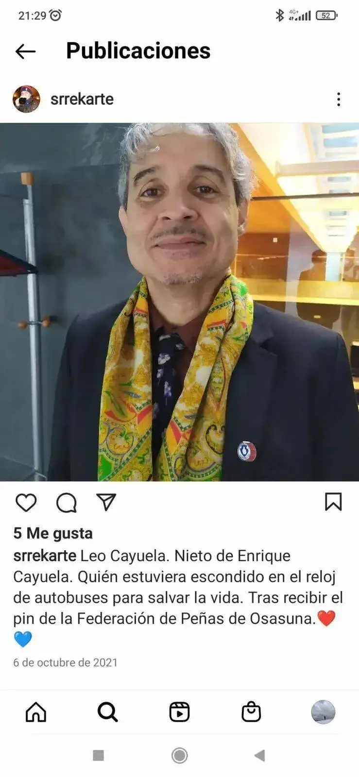 EL Club Atlético Osasuna homenajeo a Natalio Cayurela a su nieto regalo un Pin conmemorativo,