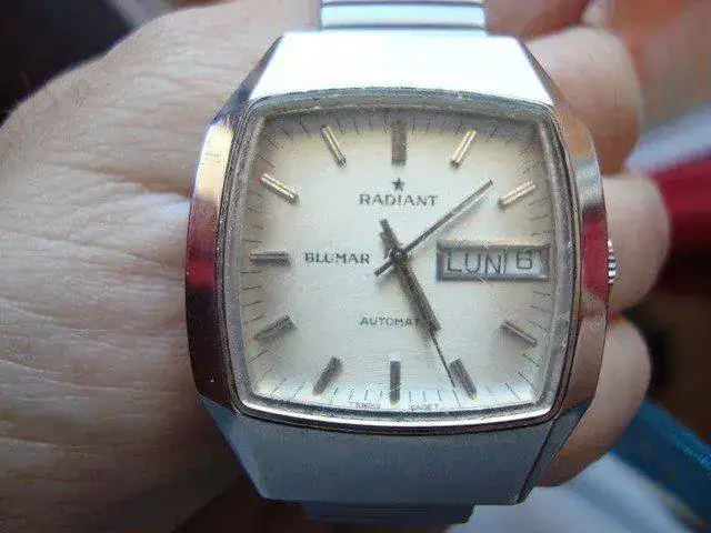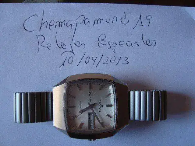 [font="]hola a todos, siguiendo con la restructuracion de la plantilla, como ha entrado varios pues varios tienen que salir y uno de ellos es este radiant blumar automatico con caja rectangular muy bonita con unas medidas de ancho 34 mm sin corona y 36 con ella, de alto tiene una medida de 40 mm. El armis que traia cuando lo compre estaba destrozado por lo que le compre la correa elastica que lleva en las fotos (entrego eslabones que me sobraron ya que mi muñeca es muy pequeña). El reloj esta recien salido del relojero que lo ha pulido y le ha dado un repaso a la maquinaria que funciona a la perfeccion, lo unico reseñable es el cristal que tiene arañazos superficiales ya que no he querido cambiarlo para que sea completamente original.[/font] [font="]el precio que le pongo es de 55[/font][font="] euros con envio incluido por correo certicado con nº seguimiento.[/font]