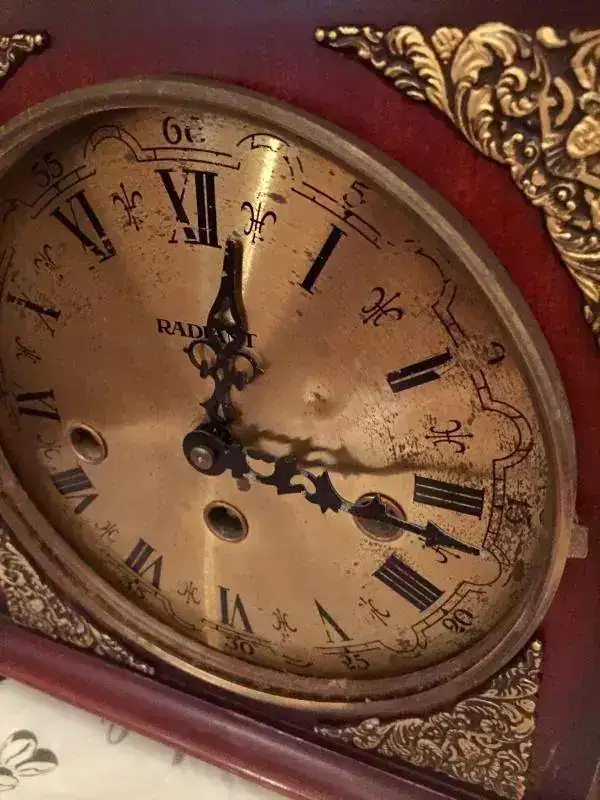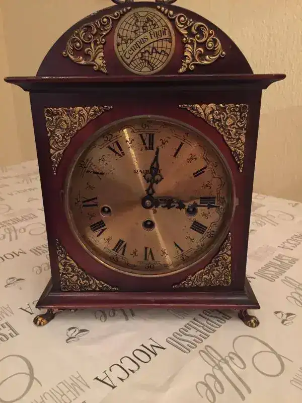 En fin no quiero enrollarme, por lo que paso al lo que todos nos gusta, os presento mis últimos pequeños los cuales me gustaría saber en qué año nacieron uno de ellos es de relojería gruesa de carillón de marca radiant de sobremesa y otro es un despertador de viaje marca blessing, del que no se nada ,espero que podáis darme información y ayuda de cómo limpiar esferas y restaurar.