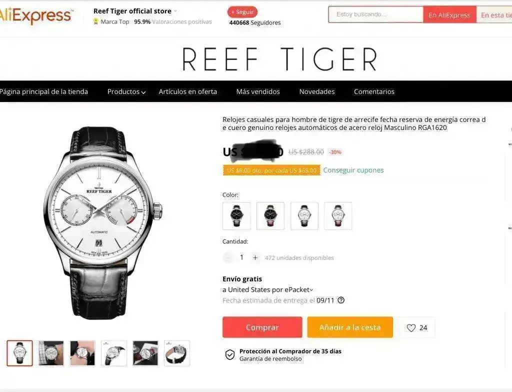 Recientemente me sentía aventurero y me di un paseo virtual por AliExpress, hacia un tiempo que me había fijado en los relojes Reef tiger que quizás el nombre no era el más atractivo del mundo, si parecía hacer relojes de bonito diseño y buena calidad.