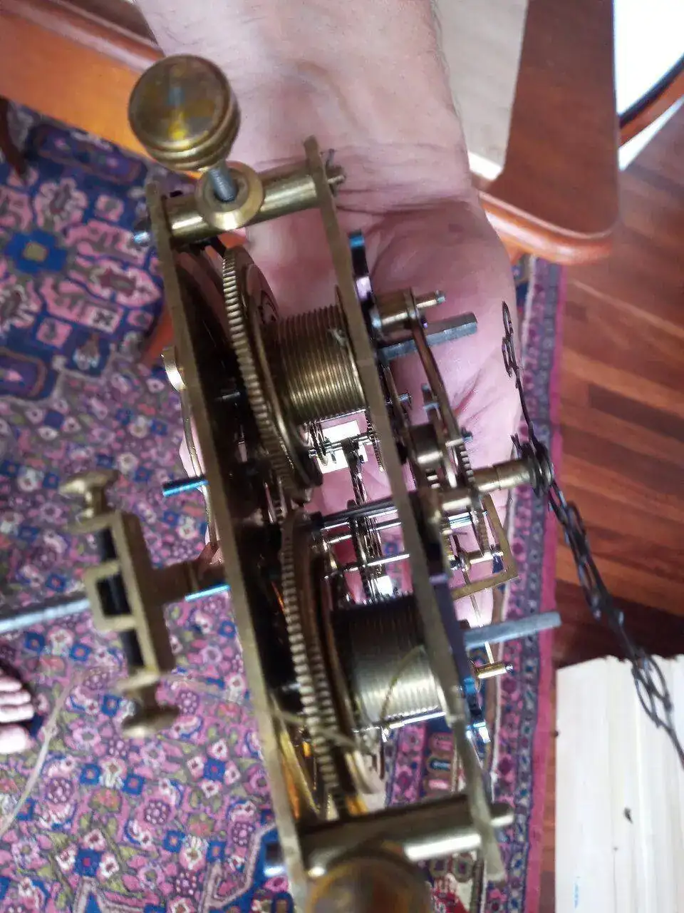 Tengo un reloj de pared de 2 pesas y se me ha roto una de las cuerdas. Al intentar cambiarla no veo la forma de hacerlo sin desmontar la maquina entera.