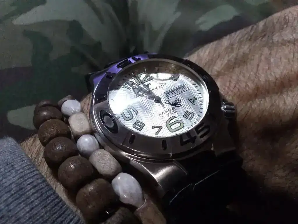 El reloj de la foto es un "tuning" se trata de un cuarzo con esfera, bisel y cristal "aftermarket"