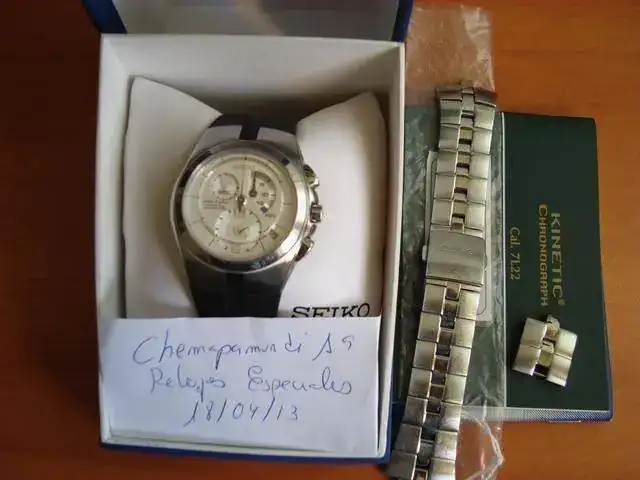 [FONT="]HOLA A TODOS, SIGUIENDO CON LA RESTRUCTURACION DE LA PLANTILLA, COMO HA ENTRADO VARIOS PUES VARIOS TIENEN QUE SALIR Y AHORA LE HA TOCADO A UNO QUE NUNCA PENSE QUE VENDERIA, SE TRATA DE ESTE SEIKO ARCTURA KINETIC CRONOGRAF DIAL BLANCO PRECIOSO. EL RELOJ ESTA BASTANTE BIEN (COMO SE PUEDE APRECIAR EN LAS FOTOGRAFIAS ADJUNTAS) LO UNICO QUE SE LE PUEDE APRECIAR SON UNOS MICROPELILLOS EN LA CAJA A LA ALTURA ENTRE EL 7 Y EL OCHO QUE HE INTENTADO QUE SE VEAN EN LAS FOTOGRAFIAS ADJUNTAS, NO SON NADA PERO ME GUSTA DECIRLO TODO. HACE SEIS MESES LE HICE UNA REVISION EN MI RELOJERO Y LE CAMBIEN EL ACUMULADOR KINETIC POR LO QUE EL FUNCIONAMIENTO ES PERFECTO COMO RECIEN COMPRADO. EL RELOJ LO ENTREGO CON CORREA DE CAUCHO CORTADA PARA MUÑECAS DE 18, 18,50 CTMS, PERO ADEMAS TAMBIEN ENTREGO ARMIS ORIGINAL DE SEIKO Y EXPECIFICO PARA ESTE RELOJ CON ESLABONES SOBRANTES.[/FONT]