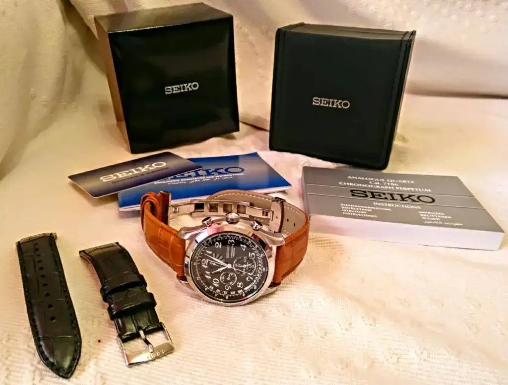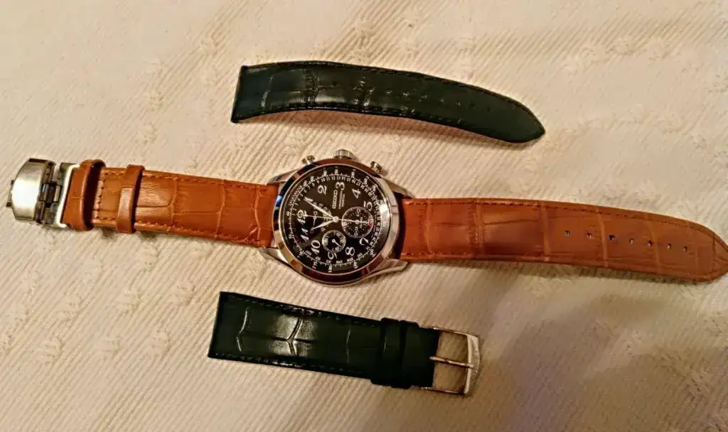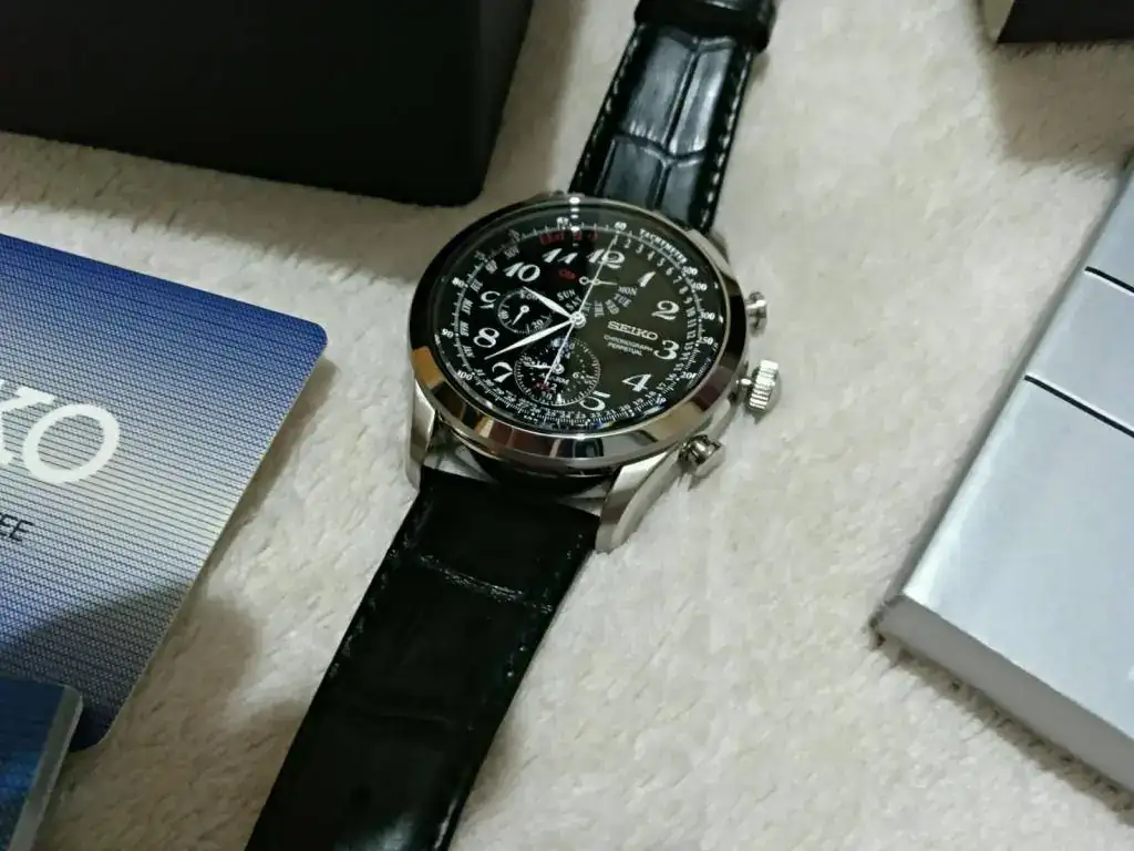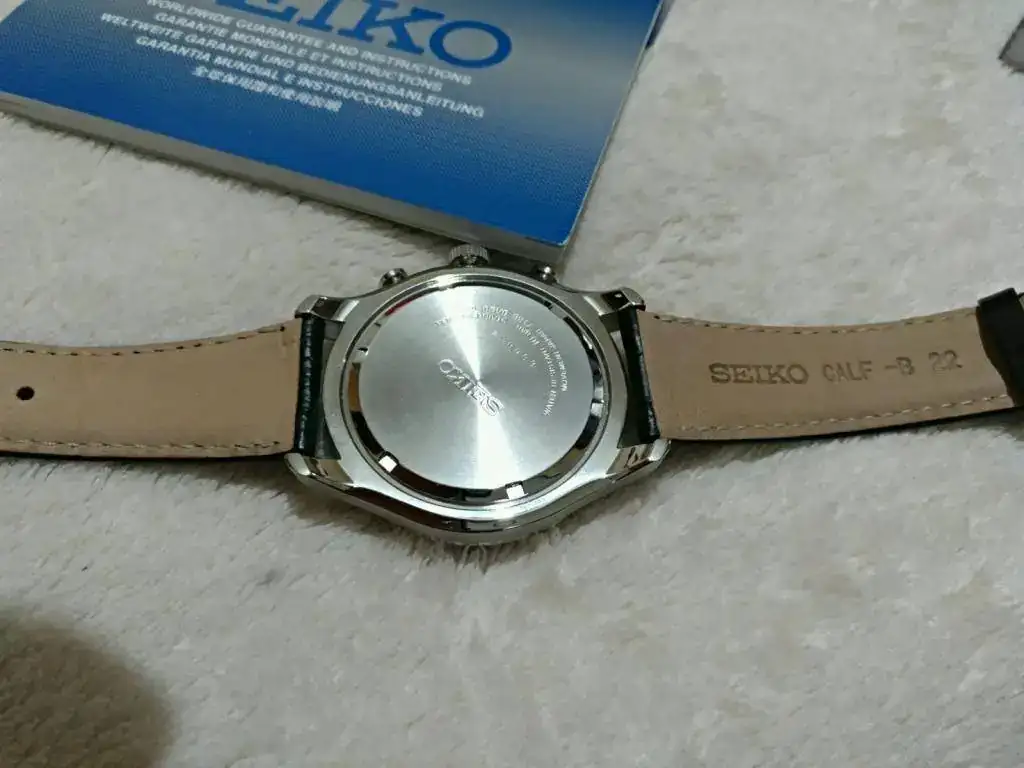 Hola a todos, pongo a la venta este Seiko chrono, su estado es excelente, no tenéis mas que ver la correa para ver el uso que ha tenido, alguna leve marca de uso como algún pelillo en el bisel de espejo muy leve y alguna marca en la caja de poca importancia, pero no tiene mas de 6 o 7 puestas, tiene chrono, alarma ( a su vez sirve de función gmt) calendario perpetuo completo hasta el 2100, estuche, manual y garantía por mas de 22 meses, comprado a finales 2017 por mi.