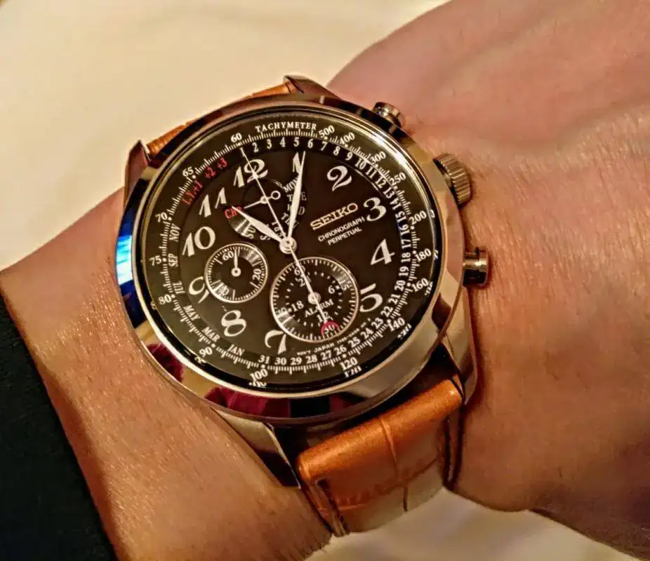Movimiento Japones de cuarzo CAL. Seiko 7t86, datario, cronógrafo, Alarma, CALENDARIO PERPETUO hasta 2100, Caja de acero inoxidable