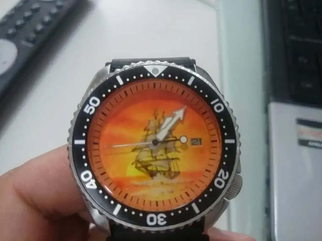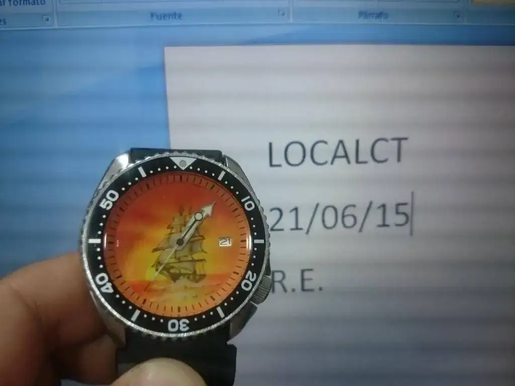 Muy buenas, acabo de adquirir de un coleccionista este Seiko, el cual me ha dicho que la esfera está pintada a mano, lo desconozco, pero es una pasada, no he podido recapitular información de este tipo de obra de arte. Destacar que tiene un estado de conservación para sus años impresionante, ni marcas ni roces ni pelillos graves, y la correa original prácticamente nueva por no decir a estrenar.