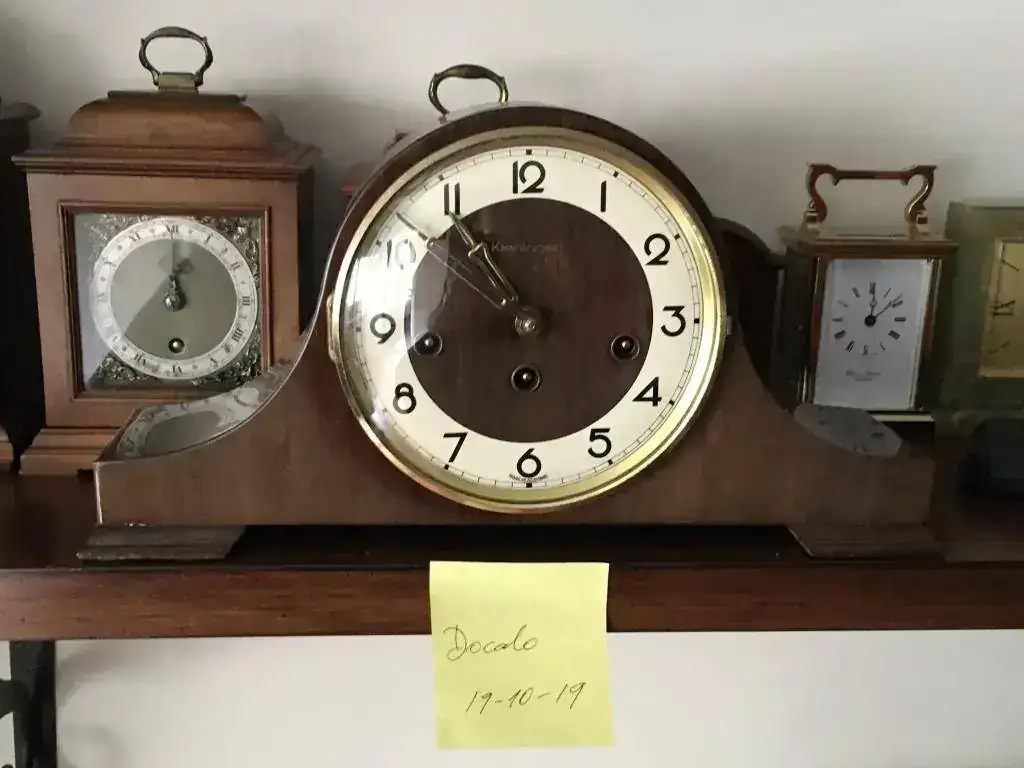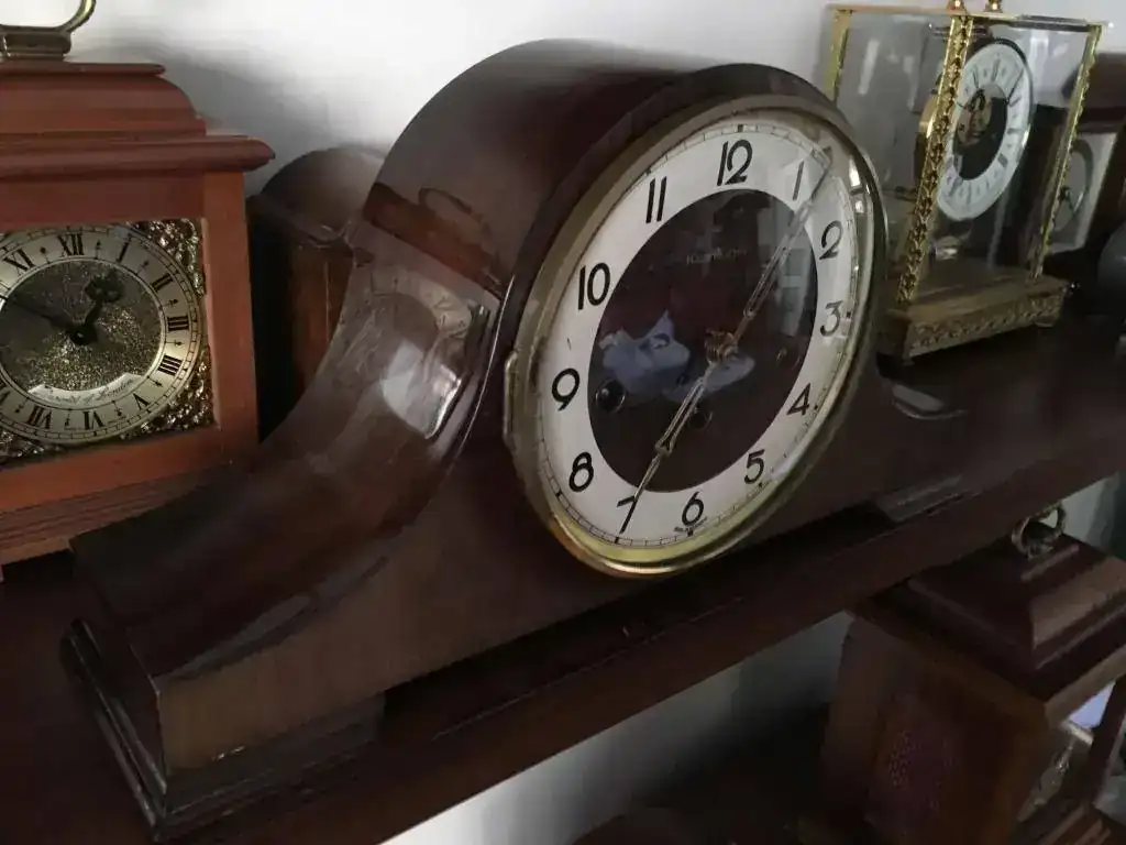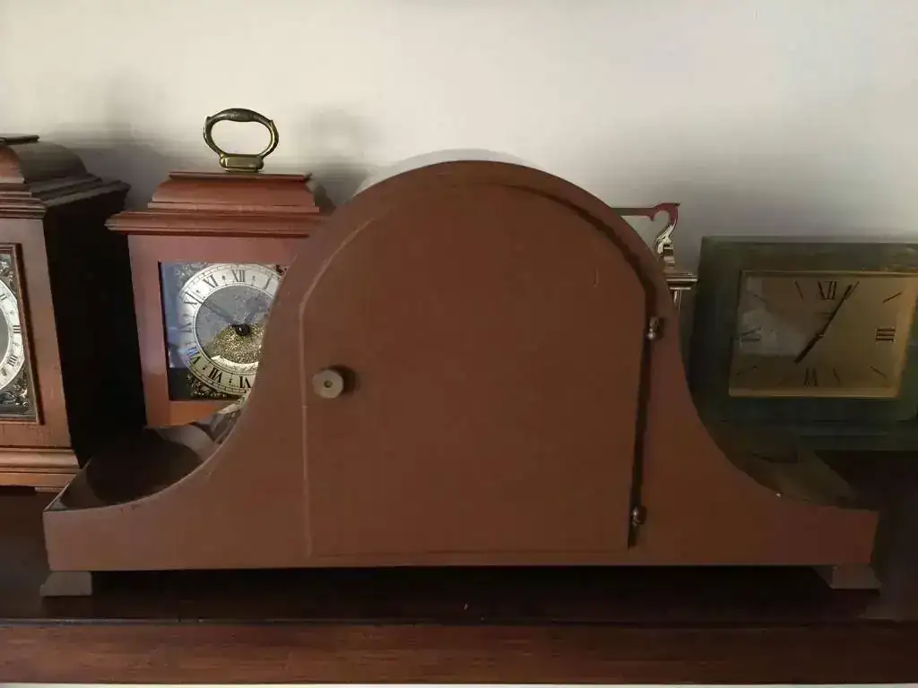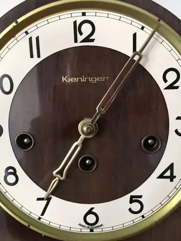 Reloj de sobremesa fabricado en Alemania. Maquinaria Hermle carrillon tocando todos los cuartos y las horas con la melodía Westminster. maquinaria mecanica de cuerda de 8 dias con escape flotante de espiral plano de ultima generacion, limpia y aceitada . mueble en madera de nogal, mide 37x19cm. Estado y funcionamiento excelente, a excepcion del barniz que en su parte derecha es un poco mas claro. solo 99€
