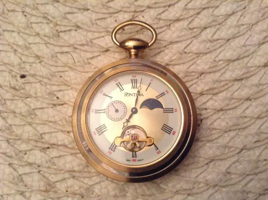 Este bonito reloj con pie plegabley se convierte en reloj bolsillo. Horas minutos y indicador dia noche. Inmejorable estado, ideal para despacho o mesilla ( no es despertador eh?).