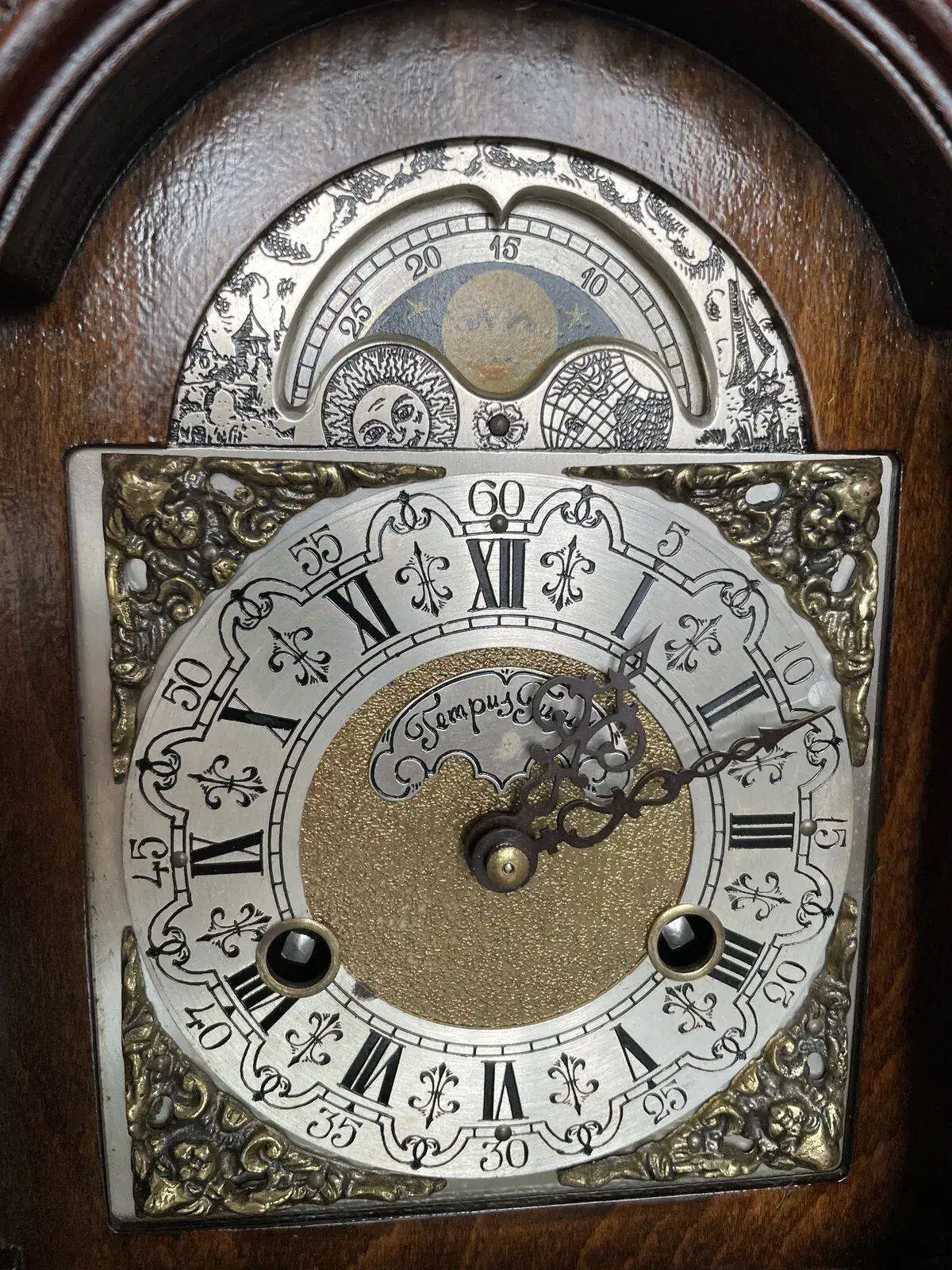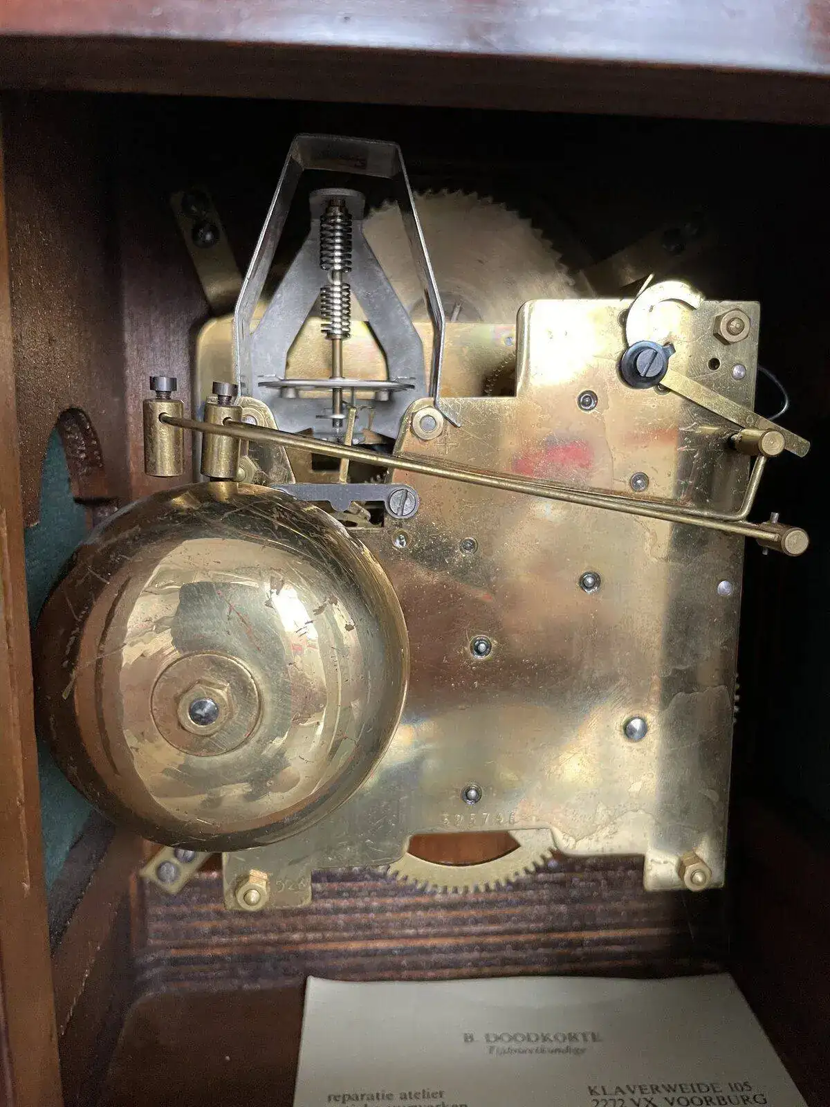 Movimiento: mecánico 8 dias con soneria en horas y medias sobre dos campanas