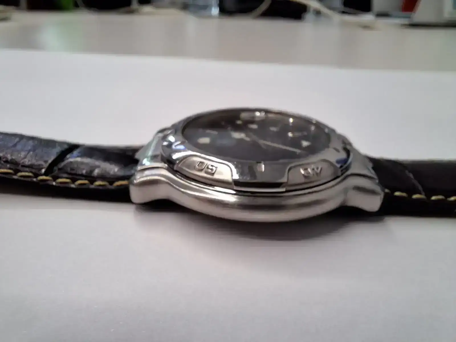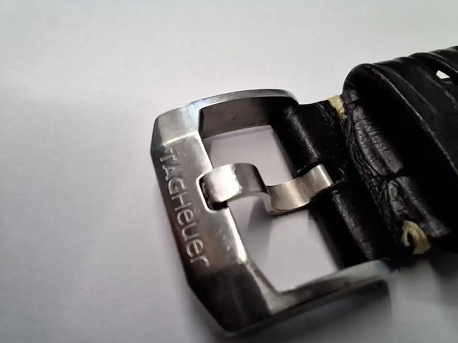 La correa no es original del reloj. La hebilla es Tag Heuer, desconozco si la original del reloj.