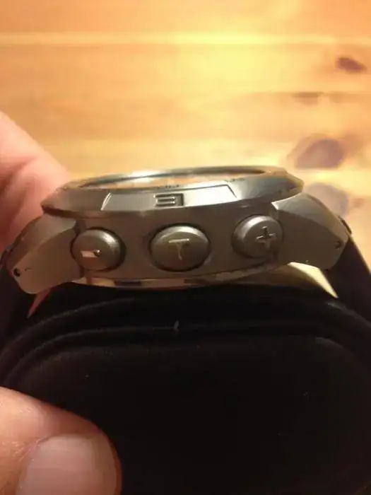 - Funciones disponibles al tocar con un dedo su cristal de zafiro: Altímetro, Barómetro (con indicación de la previsión meteorológica), Alarma, Cronógrafo, Temperatura y brújula digital (las saetas indican el norte en cualquier posición que usted ponga el reloj), datario.