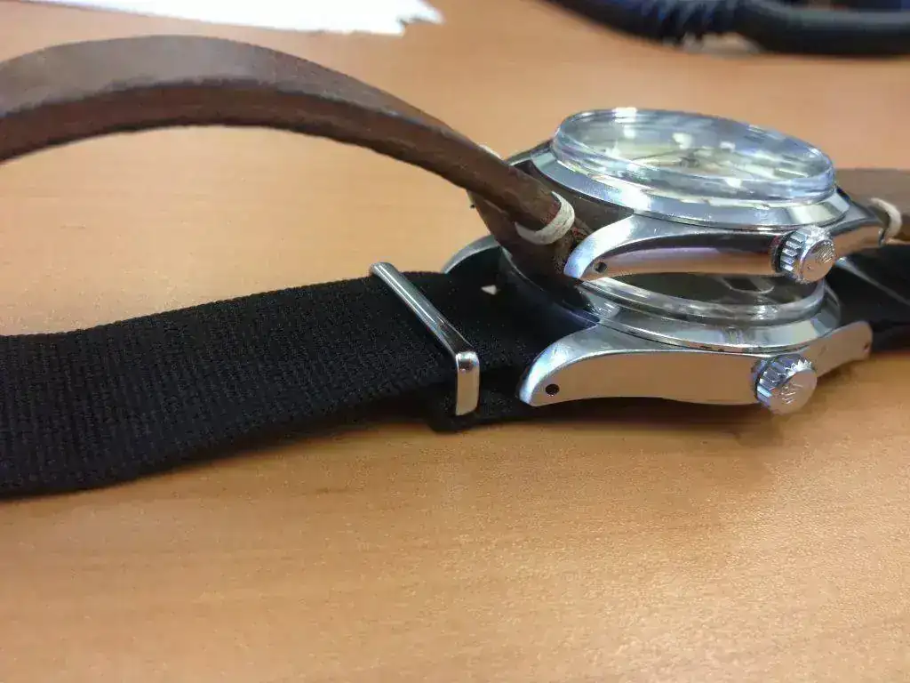 Sólo se vende el reloj con la NATO negra usada.No incluye correa alguna aunque podría vender cualquiera de las correasenvejecidas de Bulang & Sons que se muestran en las fotos. Preguntar siestáis interesados.