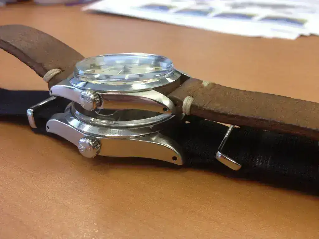 Aquí dos fotos para comparar el tamaño con el de un Tudor de 34mm: