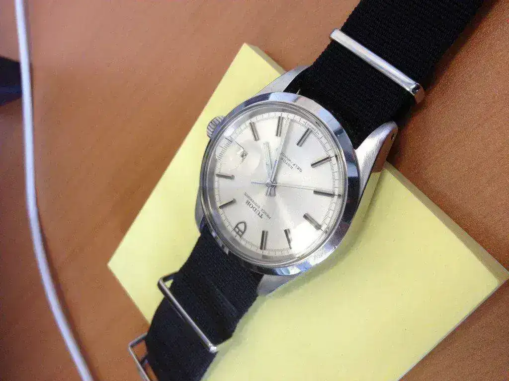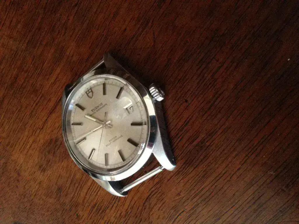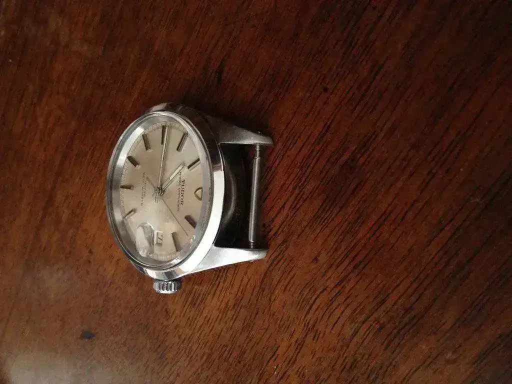 El reloj está francamente en un muy buen estado.Soy su segundo propietario. Diría que sólo tiene un pulido, a juzgar por lovivo de sus aristas. La esfera es mucho más llamativa en directo. Las agujastienen tritio que apenas brilla en la oscuridad. La esfera original carece detritio como era común en muchos Tudor de la época.