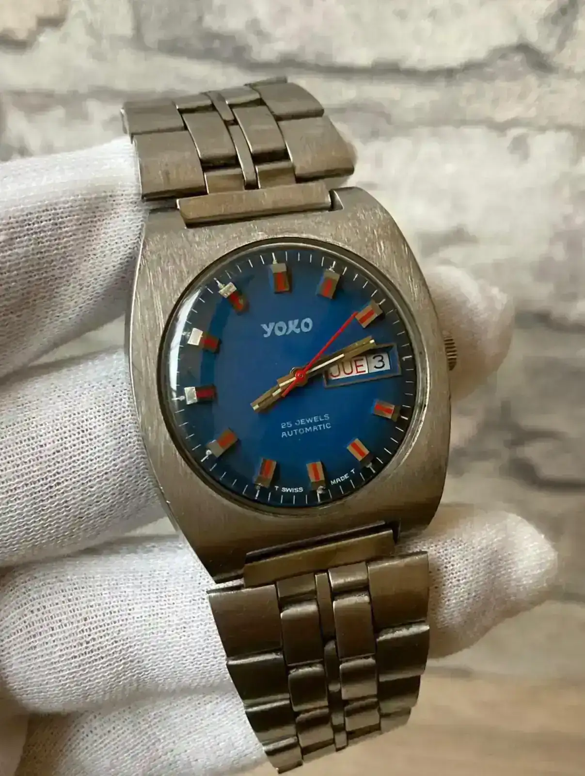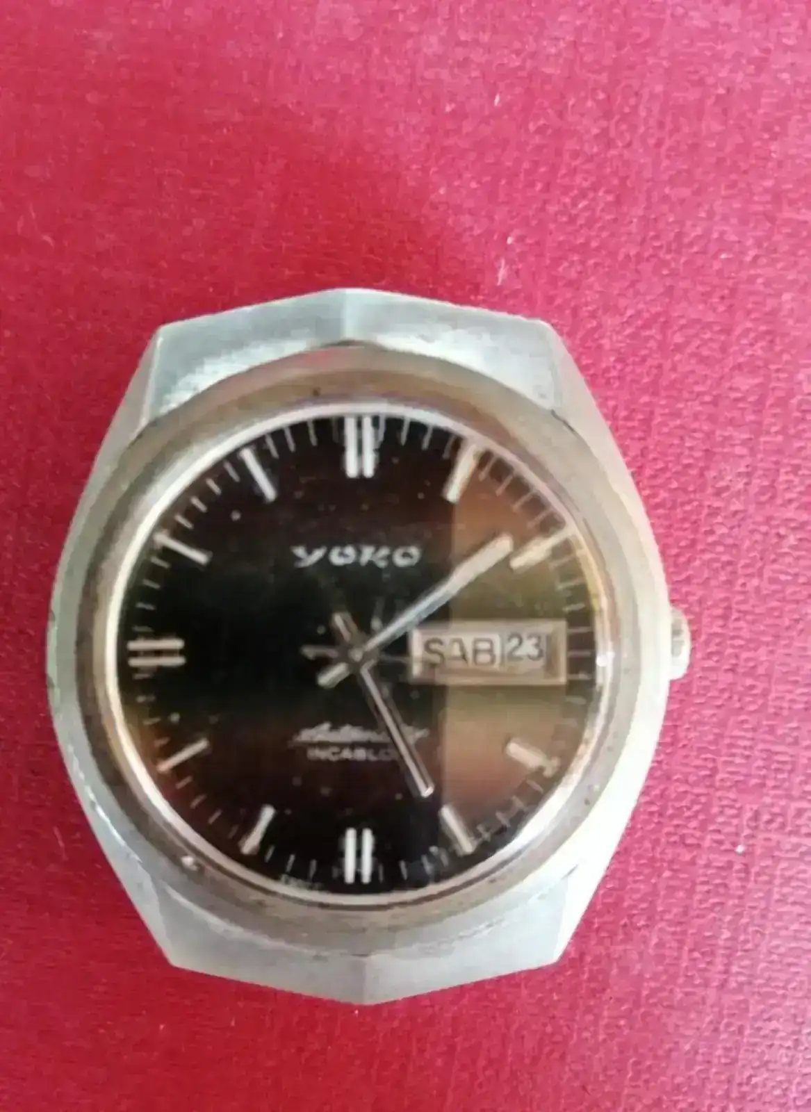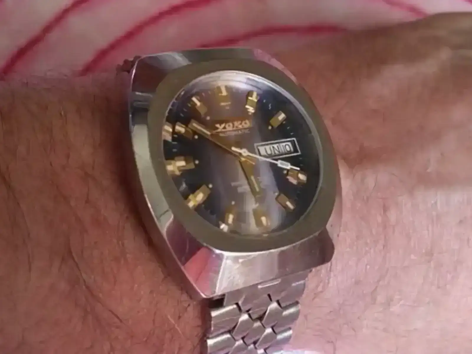 Hoy a raiz de otro hilo buscando algo de información de un reloj de bolsillo de mi abuelo, encontré en uno de sus cajones este otro reloj, del que la única información que he podido recopilar es que es Swiss made con calibre ETA 2789 y que ademas funciona, nunca se lo vi puesto.