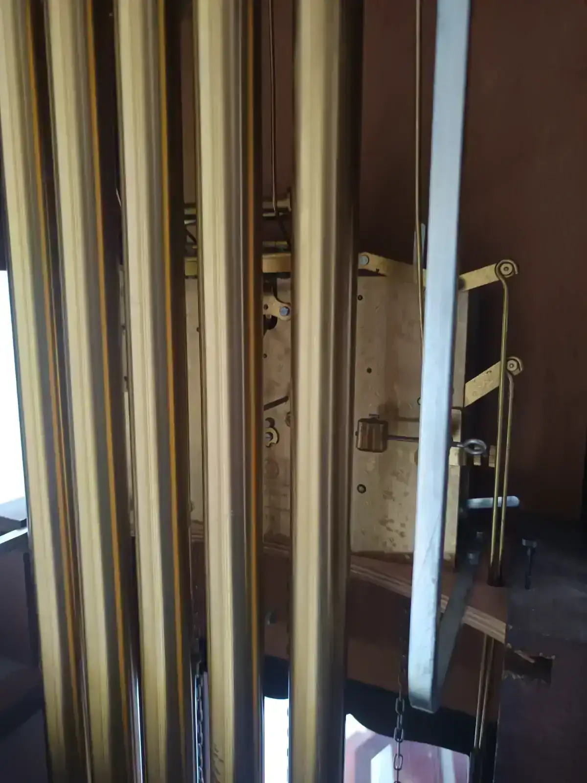 Hay una cosa que no puse pues pensé que tendría fácil solución y es que las varillas que van incrustadas en una caja, me partieron dos en la mudanza.Aquí dejo una foto. Yo ya no sé qué hacer, el reloj antes funcionaba perfectamente, e incluso cuado me lo compró mi padre el señor que vino a ponerlo en marcha me dijo que se le podía cambiar hasta el tono de las campanas.
