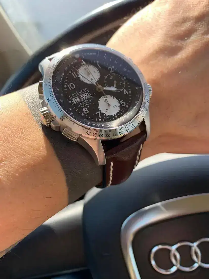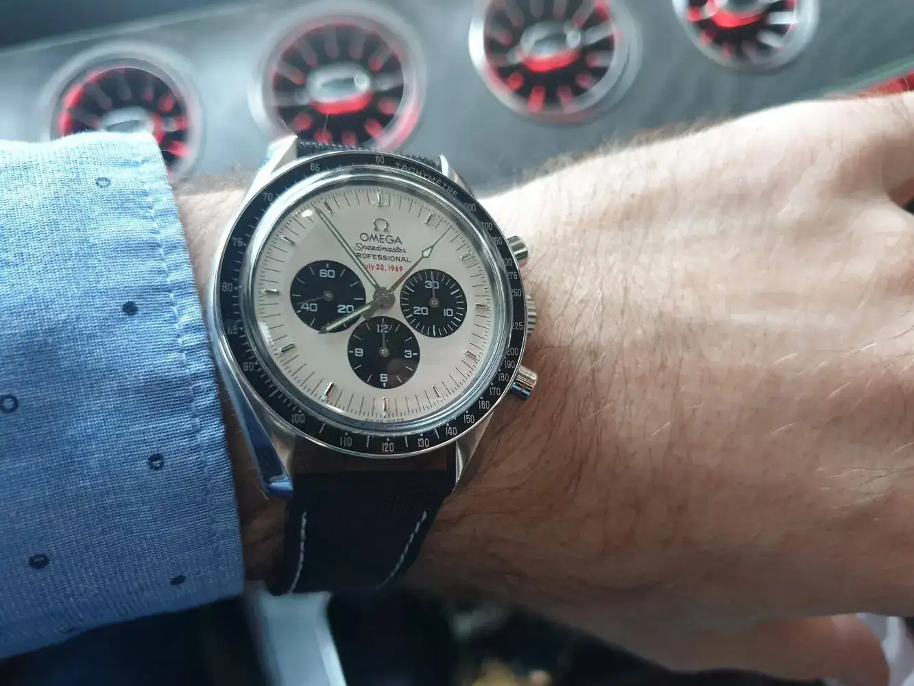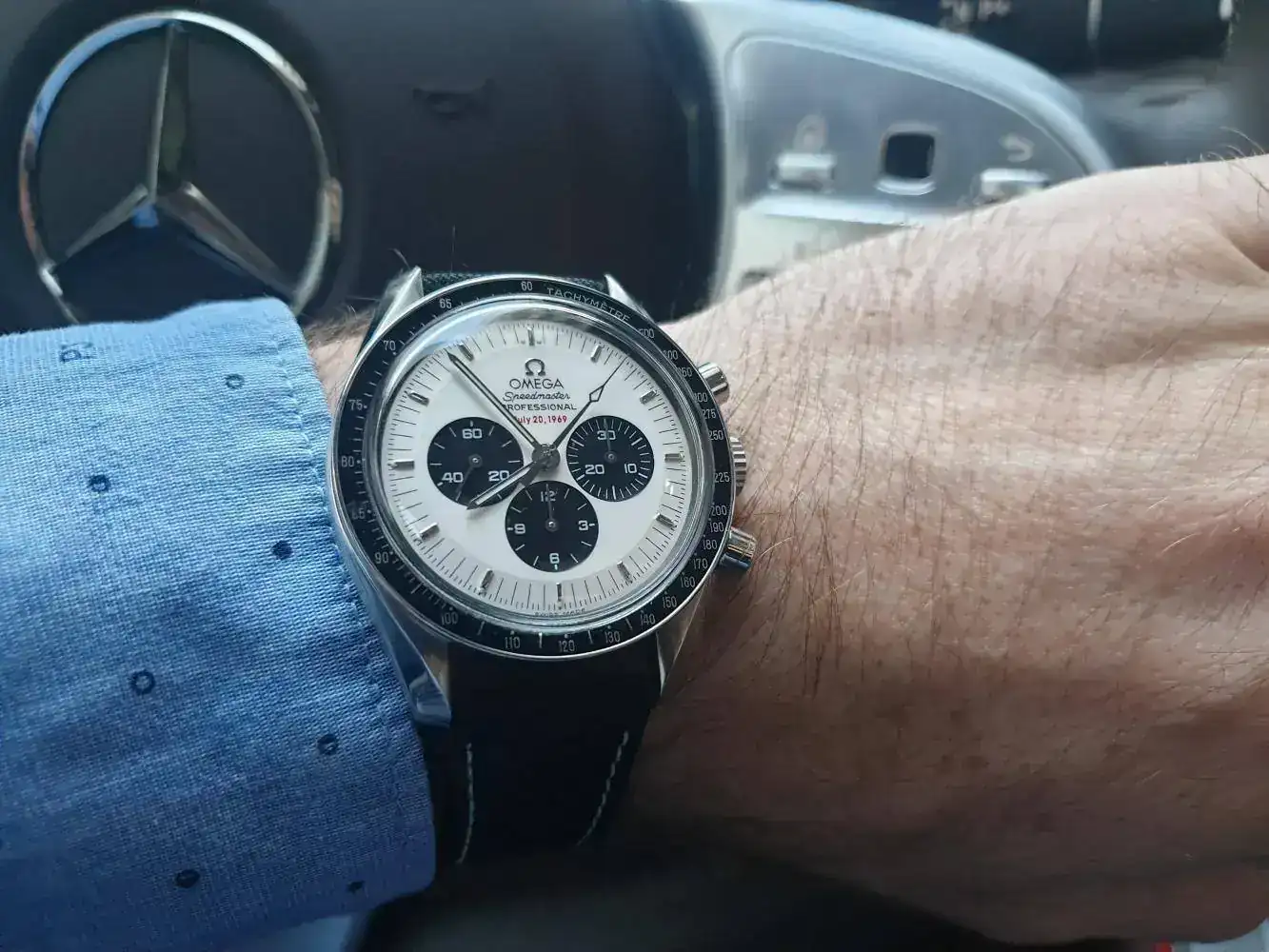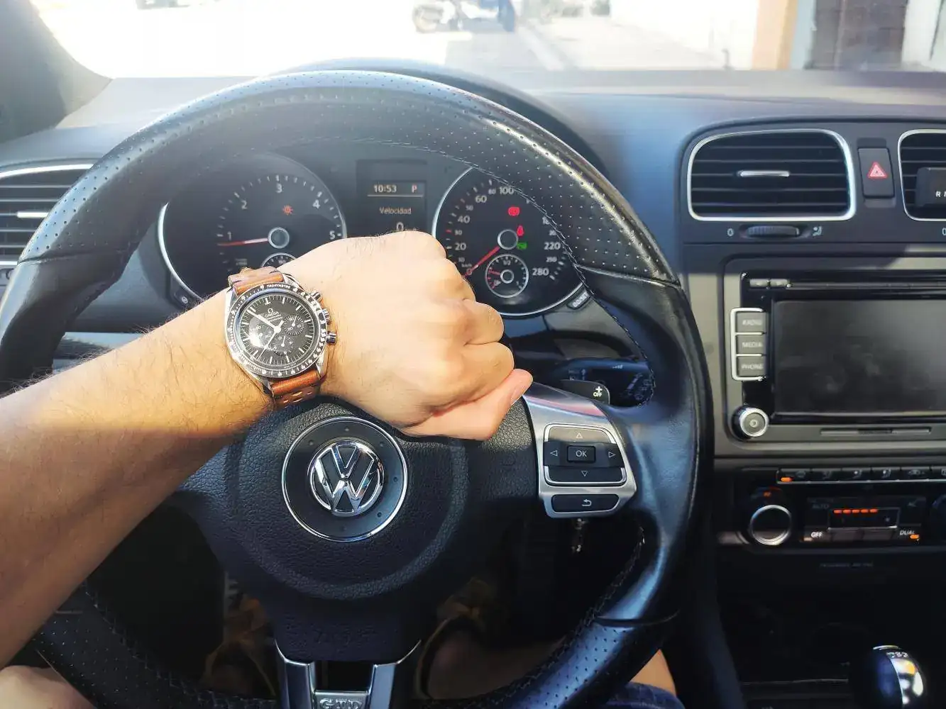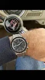 Pongo dos fotos que puse en hilos que creé hace unas semanas. Un Seiko 6139 en un Mercedes C180 y un Omega Speedmaster Reduced en un Escarabajo: