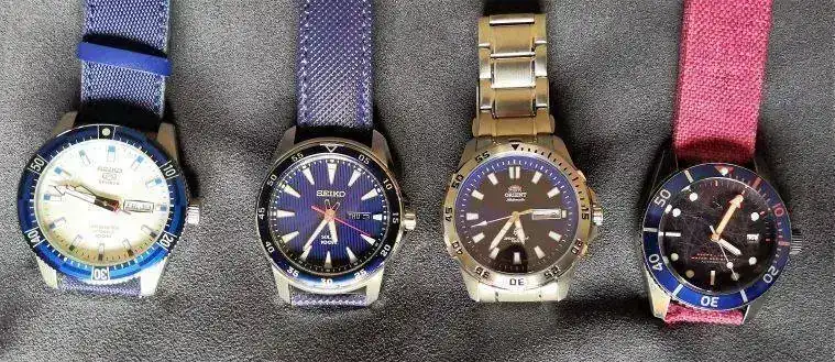 Seiko blanco nacarado con bisel azul, Seiko solar, Orient y Spinnaker
