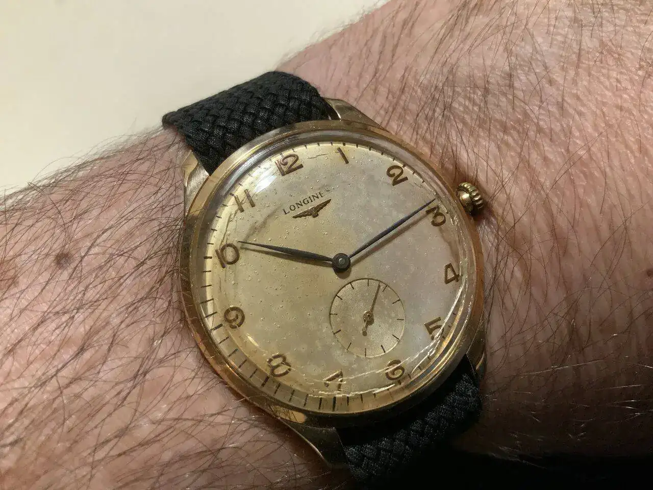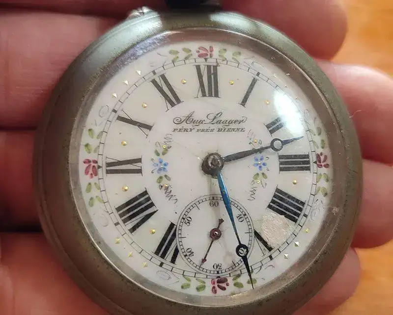 Era de mi tío-abuelo José Julio, lo compró cuando aún vivía en Barquisimeto, Venezuela, como tantos emigrantes canarios que se fueron allí a buscar un futuro mejor que aquí se les negaba. La corona original se perdió cuando se le rompió la tija y la cambiamos por otra, pero sigue funcionando perfectamente y es muy preciso.