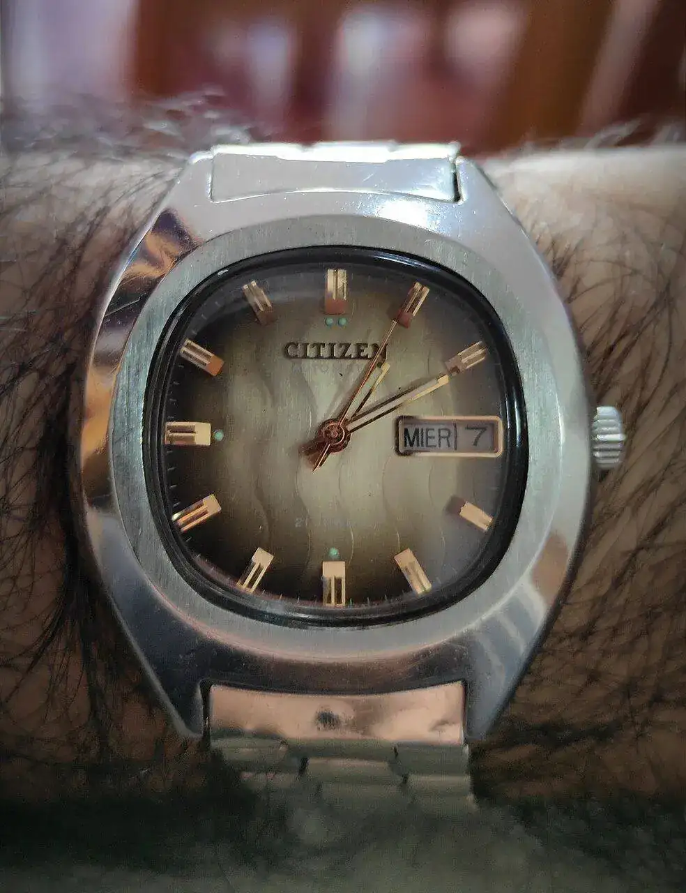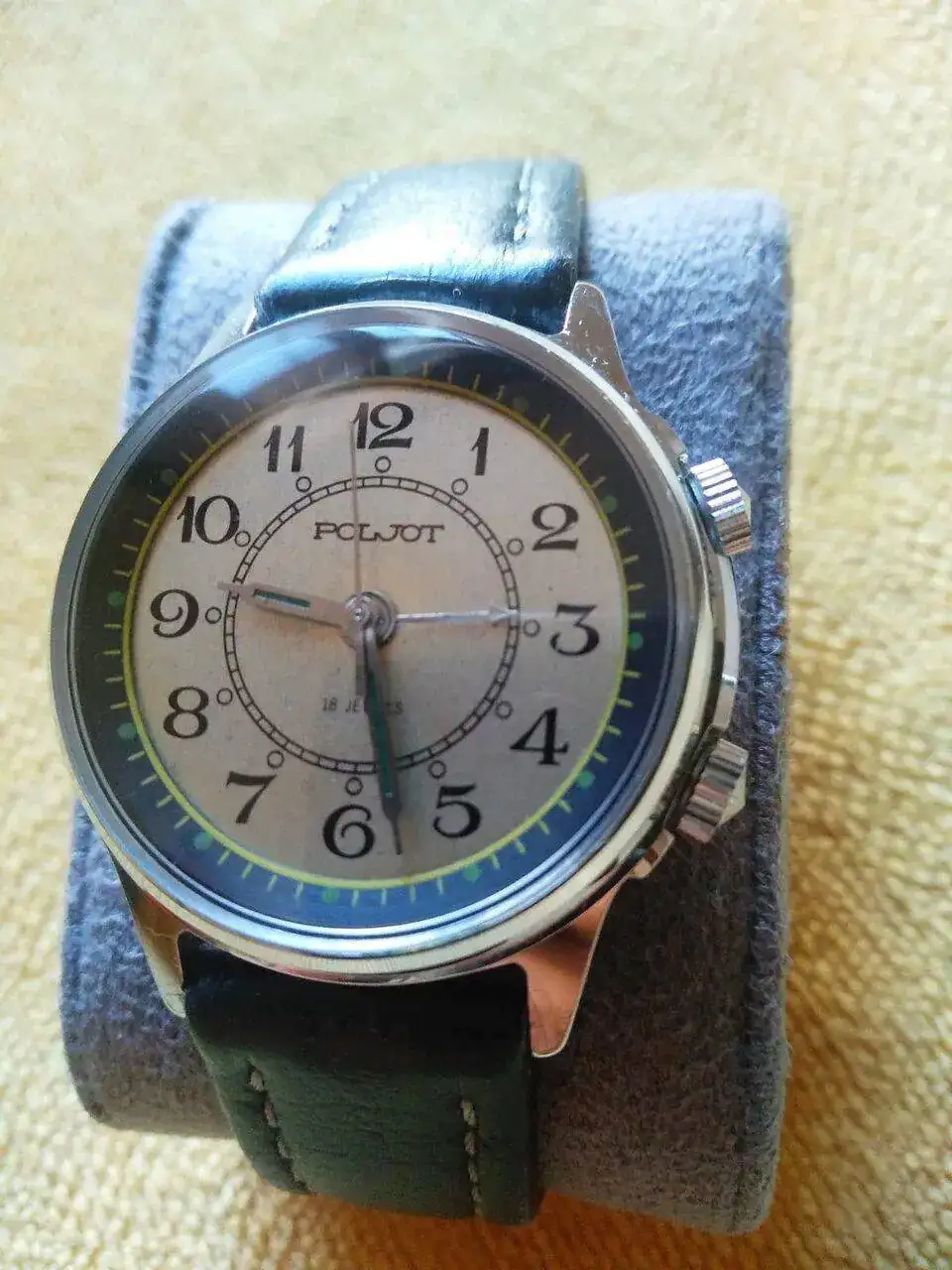 Lo compré en mi primer viaje a Berlín, allá por 1993, cuando tenía 22 añitos. Fue un viaje iniciático, de esos que marcan a uno. Me gasté mis marcos en él, unas 3.000 pesetas al cambio, de aquel entonces. Fue mi primer reloj ruso y el que hizo que les cogiese tanto cariño. Lo usé como reloj de diario durante muchos, muchos años y la pobre caja y las coronas, que eran de latón cromado, acabaron hechas gofio. Conseguí repuesto de ambas cosas y las cambié. También tuve que cambiar el plexi original, que acabó destrozado y lo reemplacé por un cristal mineral.