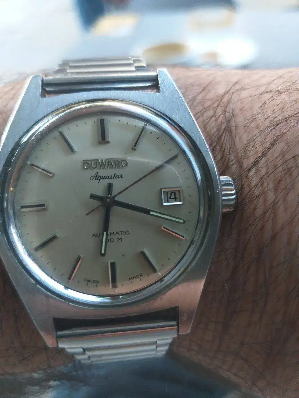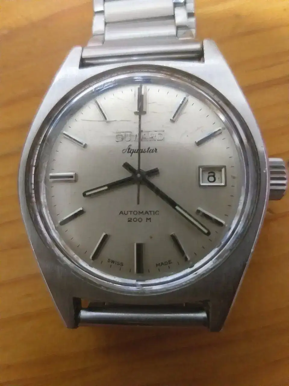 El segundo, el único reloj de pulsera que tuvo durante treinta y tantos años desde que lo compró en septiembre de 1970. Luego vinieron otros pero éste es "su" reloj, un Duward Aquastar Oceanic. Se le notan los años de uso y de edad, pero aunque anticuado lo encuentro ponible y pienso hacer con él cuando salga del taller, ponérmelo.