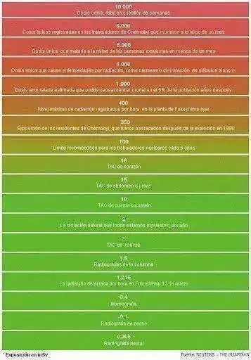 Se supone que una persona en España recibe de 2 a 3 mSv al año. Es lo normal dado por la radiación ambiental. Son niveles en teoría inocuos.