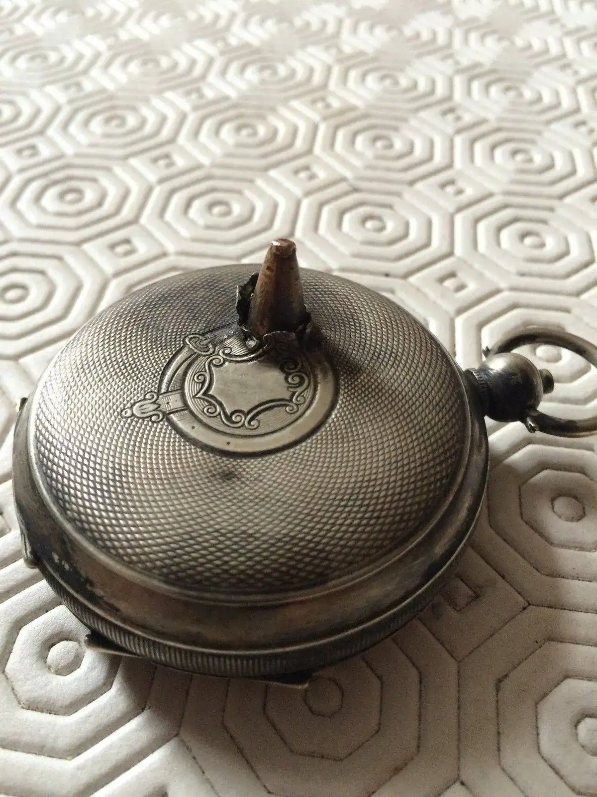 El próximo reloj es uno de bolsillo Moeris. Perteneció a Kengo Nikawa. Este hombre sí estuvo directamente expuesto a la bomba, aunque a 1600 metros de distancia. Este reloj es un poco el 'culpable' de este hilo. En una de las fotos lo verán en la parte superior izquierda de la página del libro donde está fotografiado.