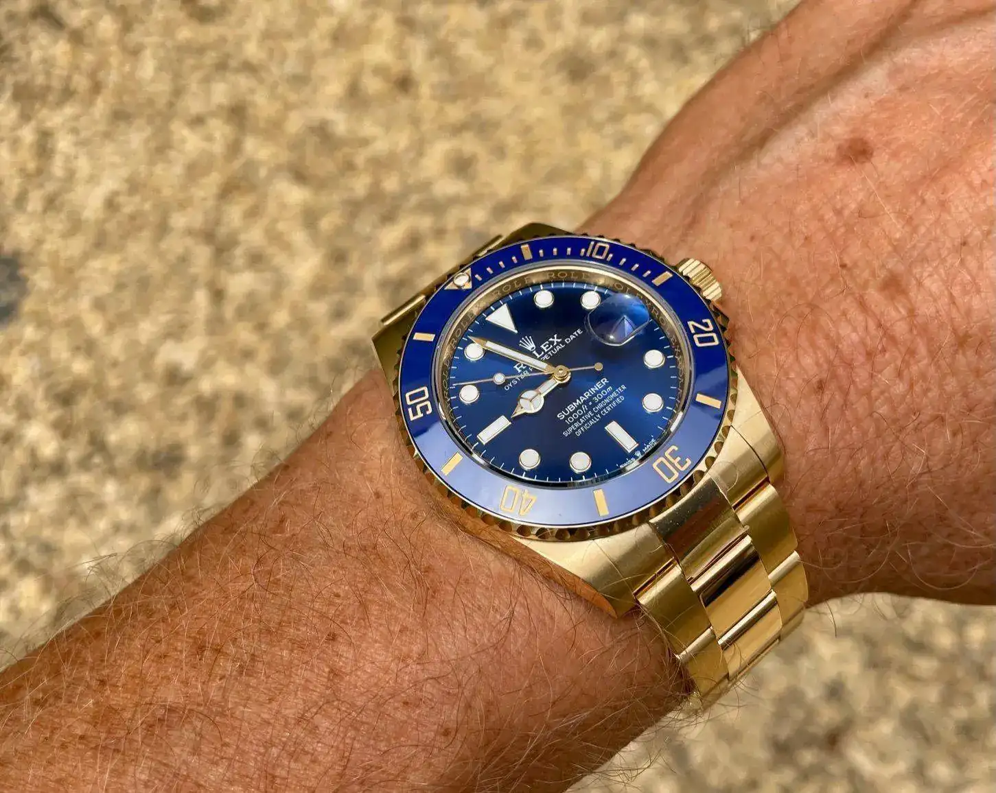 es SU-BLI-ME, quién pudiera !!!El sub de oro con esfera azul, es todo un espectáculo de reloj..