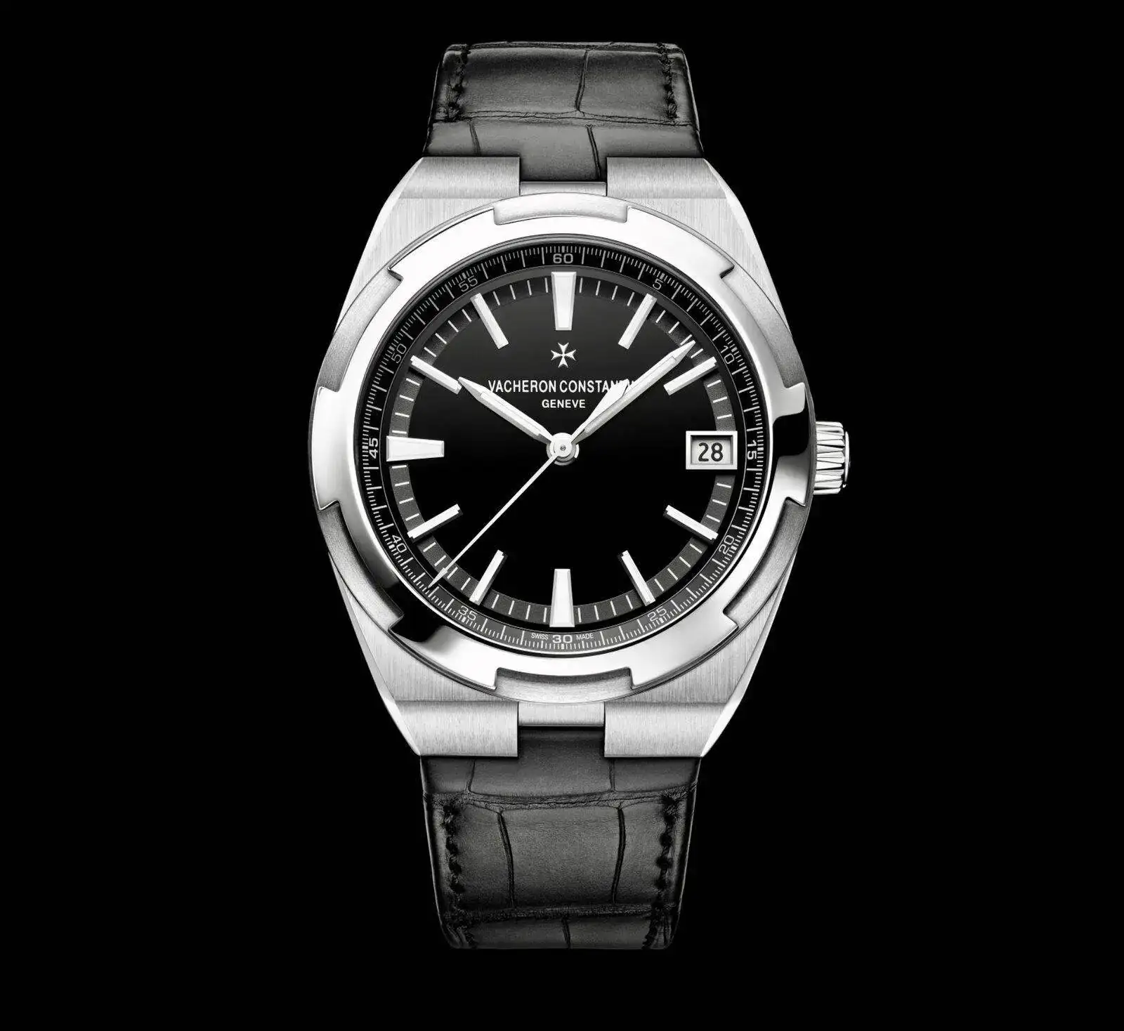 - Un JLC Reverso 976 de esfera plateada y correa negra: