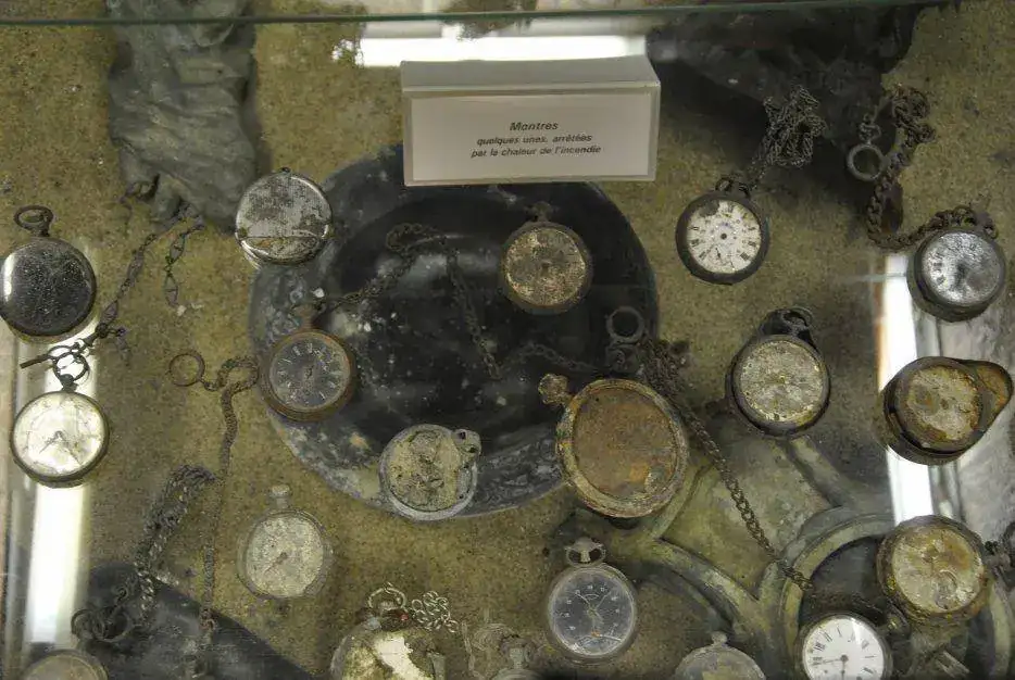 Abajo unas fotos de relojes encontrados en el devastado pueblo y un enlace que detalla la brutalidad extrema de los hechos