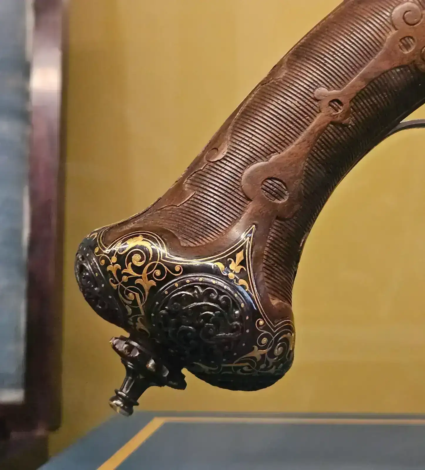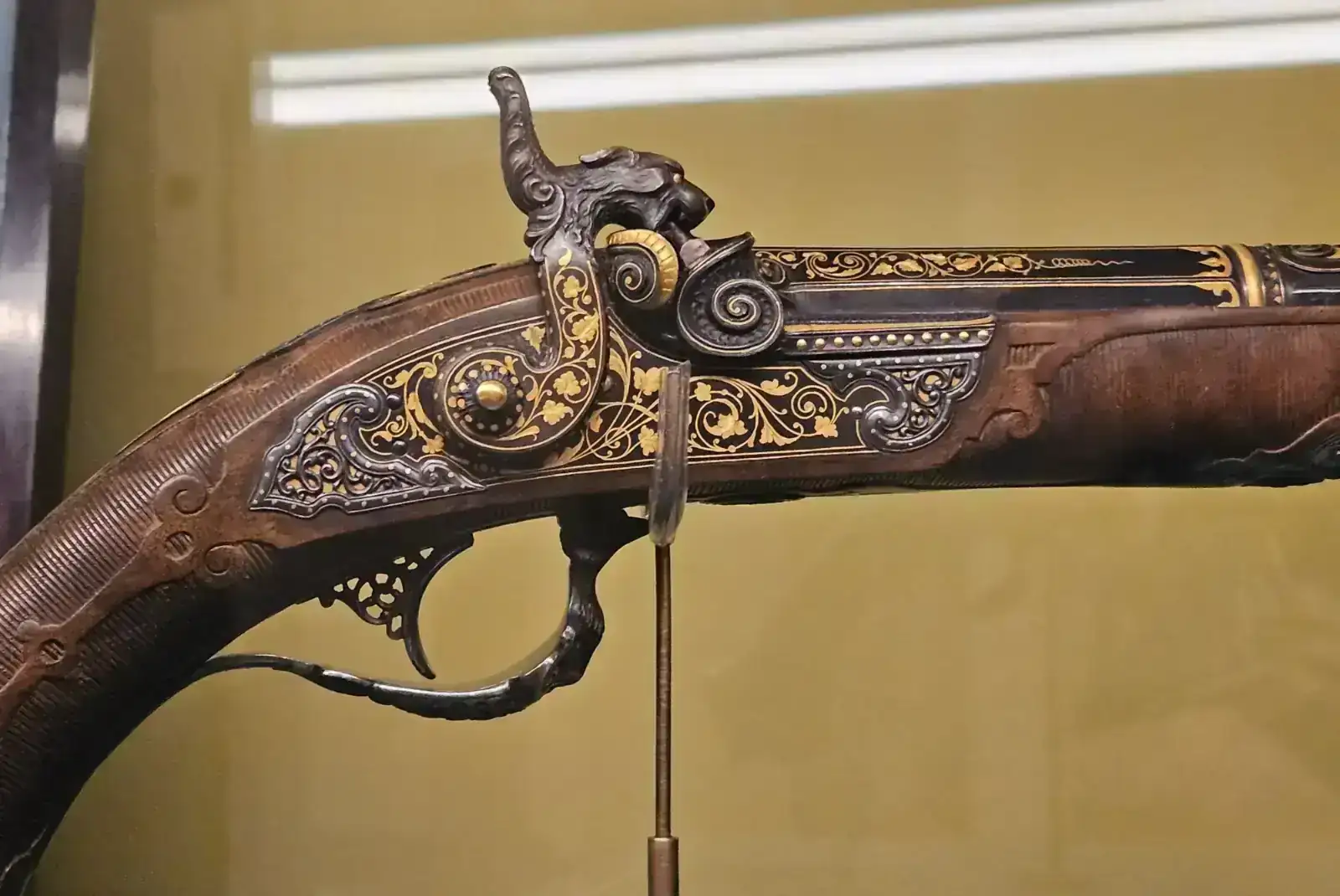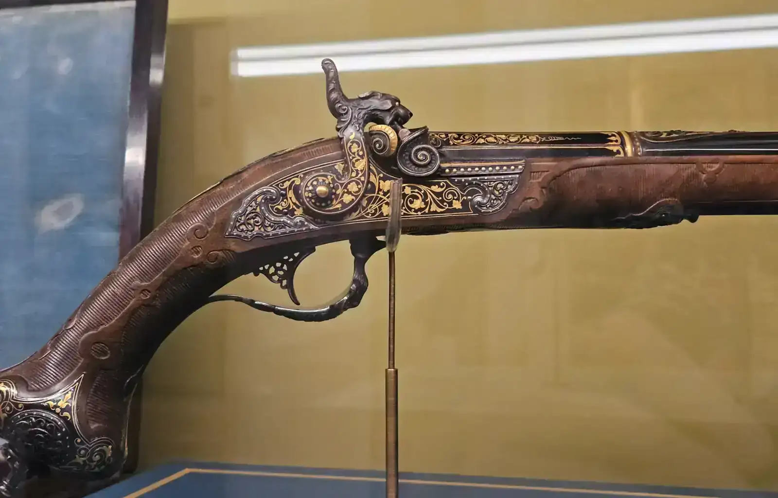 Se trata de un par de pistolas de duelo de Eusebio Zuloaga, el mejor acabucero real de la época, iniciador del arte del damasquinado moderno y además con fama internacional. Si no me equivoco el Estado pagó a un coleccionista privado 150 mil euros por estas