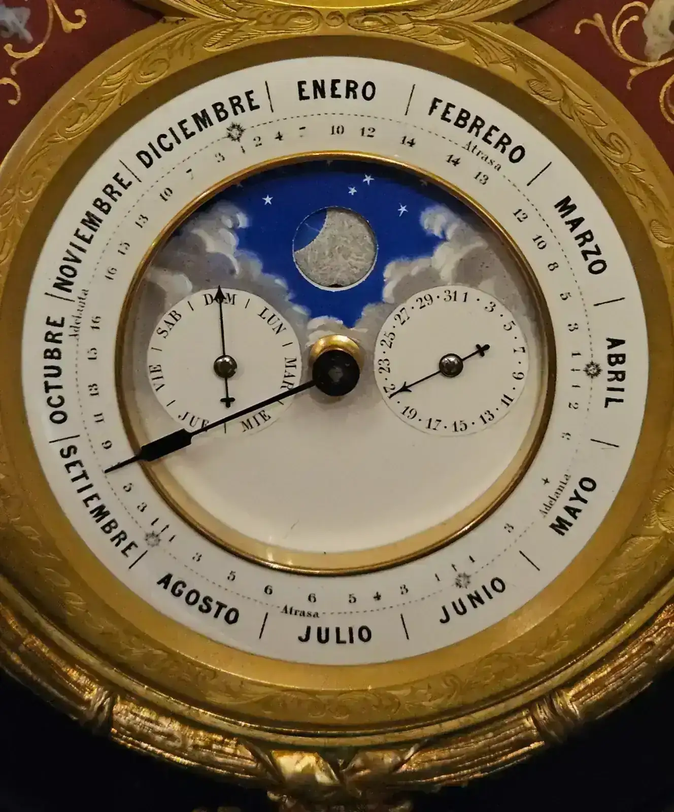 Todos los relojes excepto los de bolsillo estaban en hora, deben tener un contrato de mantenimiento y vienen a darles cuerda (me refiero a los que no tienen pesas) y a ajustarlos. Aunque el calendario del que tenia calendario completo estaba mal