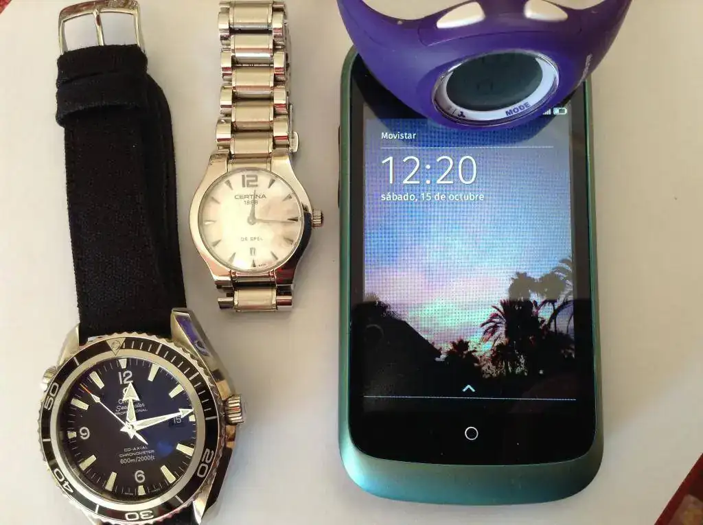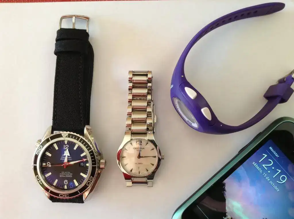Omega PO (papa), certina cuarzo (mama), cuarzo (mi hijita de 11 años), móvil (mi hija de 15).