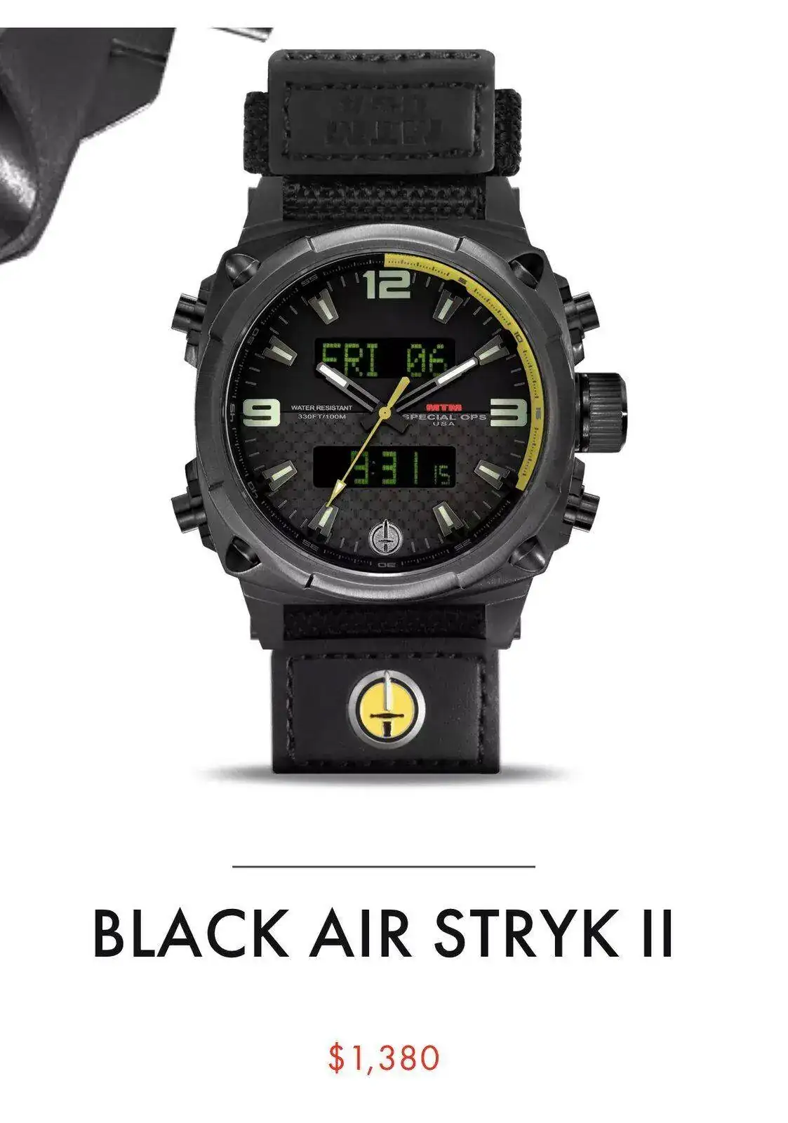 Este no se vé tan claro, pero creo que con esos índices numéricos aplicados a las 12, 3, 6 y 9, las 2 pantallitas lcd que parecen verse y el tipo de manecillas, quiero pensar que es algún tipo de Breitling Aerospace Evo Soldier, puede que con alguna modificación encima de colores, bisel o caja: