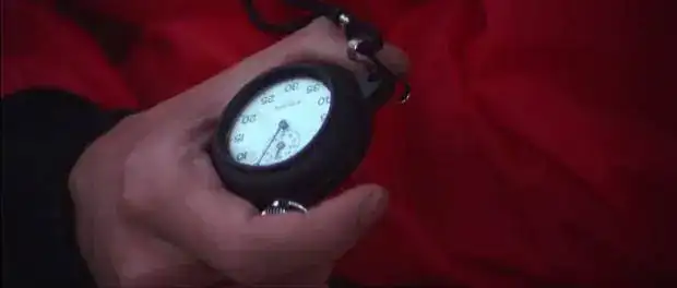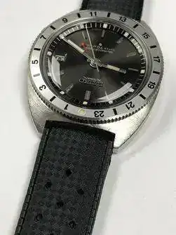 El reloj de su rival Eric Stahler. Un bicompax rojo con una tropic en caucho muy chulo. No sé identificarlo. ¿Alguien lo pilla?