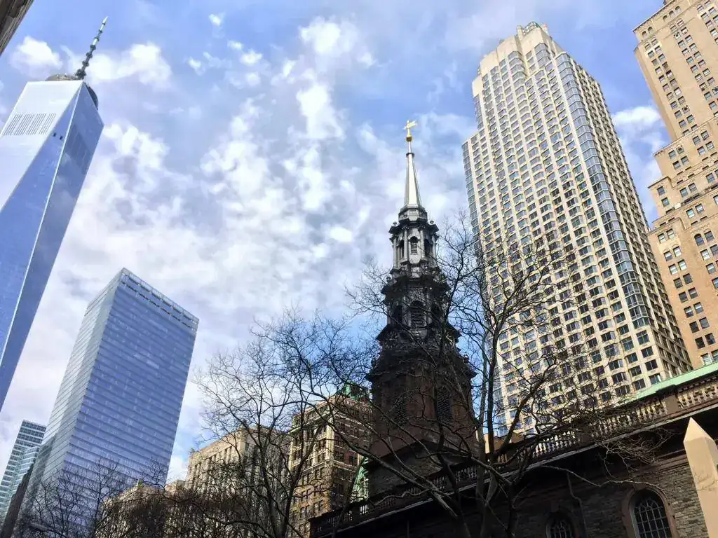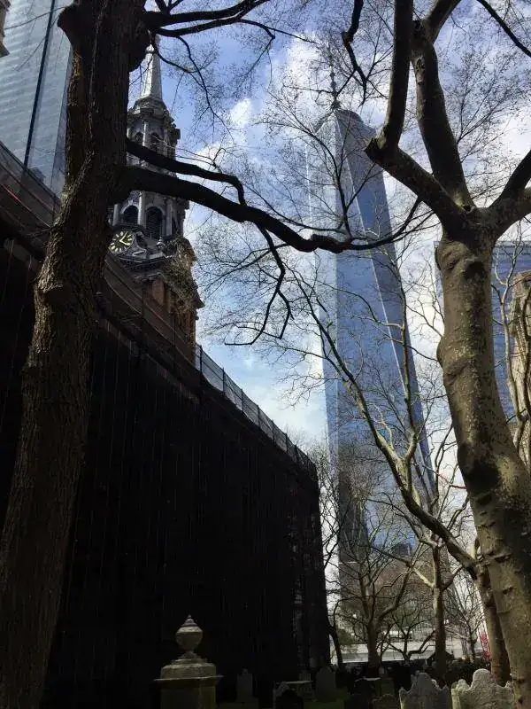 Pero sigo con los relojes: siguiendo Broadway se encuentra la capilla de San Pablo, que pertenece a la Trinity Church de Wall Street. Con estas vistas, admito que el reloj es casi lo de menos.