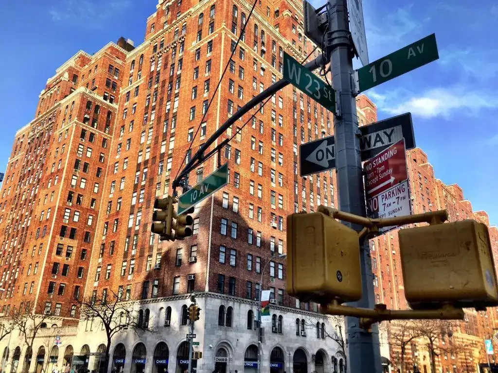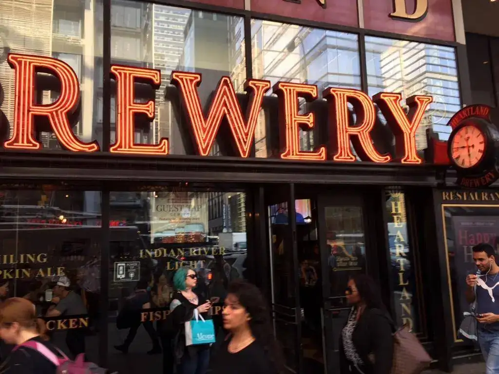 Este "Brewery" se encuentra justo enfrente del New York Times. Un edificio alto...