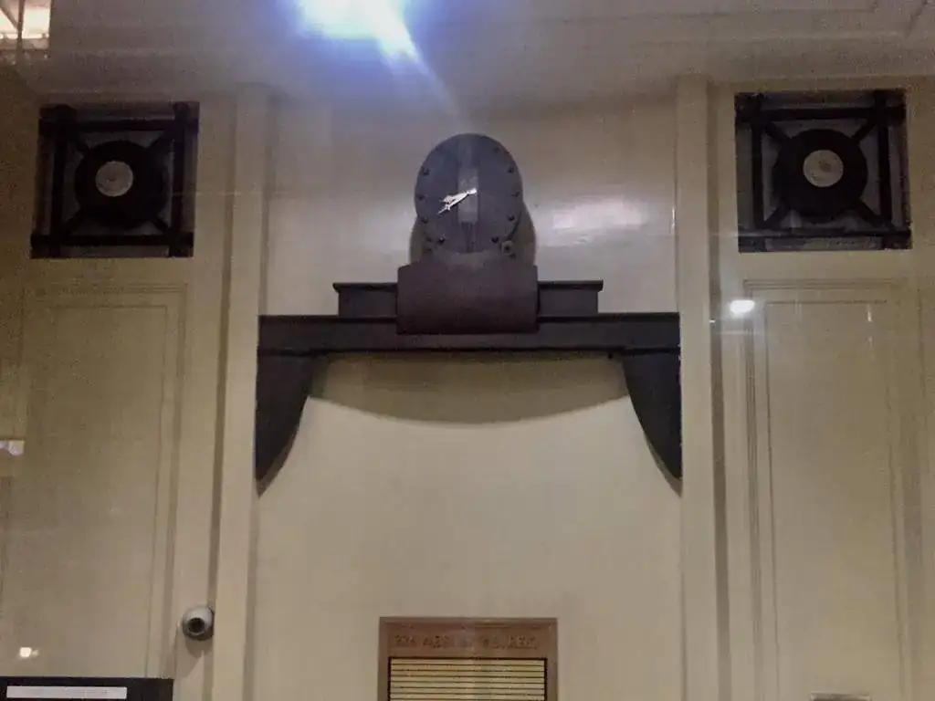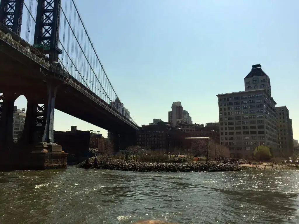 En el puente de Manhattan, justo antes de llegar al de Brooklyn y poco después de pasar el de Williamsburg, vemos un enorme reloj en el frontispicio