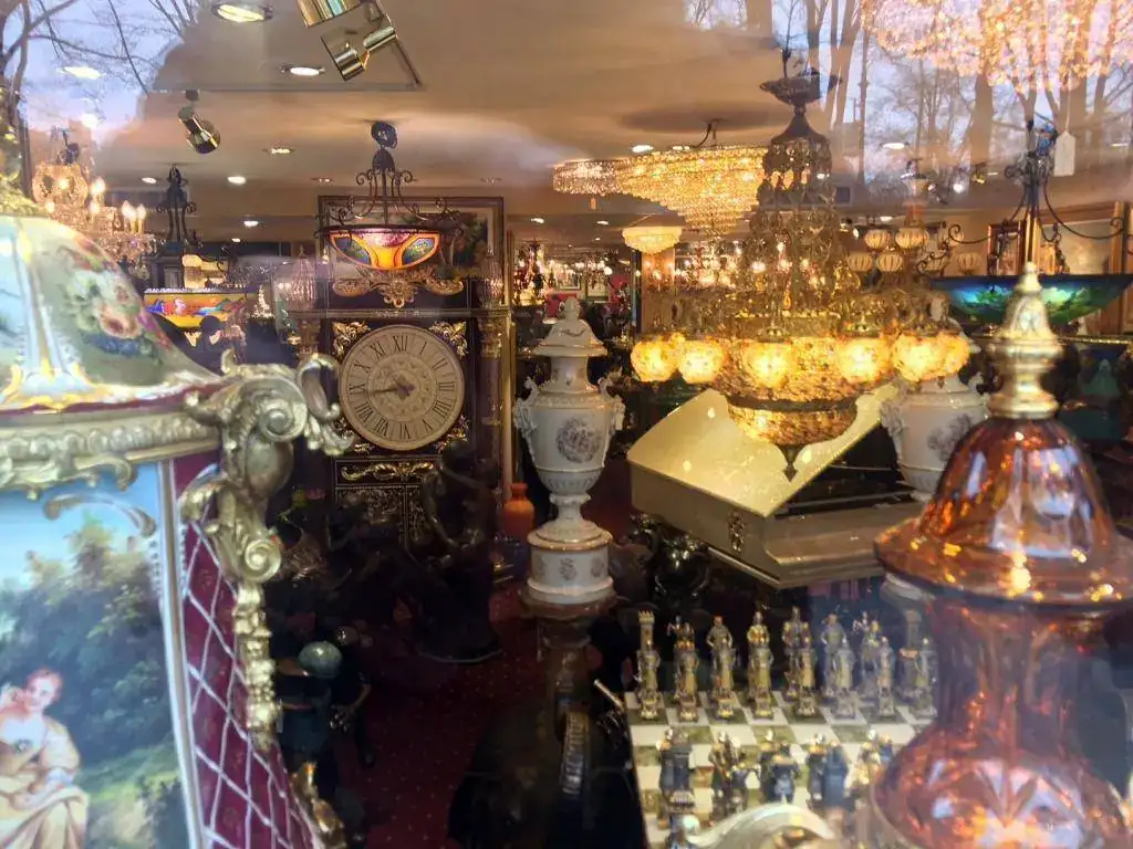 En Central Park South se encuentran edificios residenciales como los de "la Hoguera de las Vanidades", y casas de "decoración" para ellos. El reloj es de traca, pero el piano de cola cubierto de nácar a la derecha es ya pmyneg...