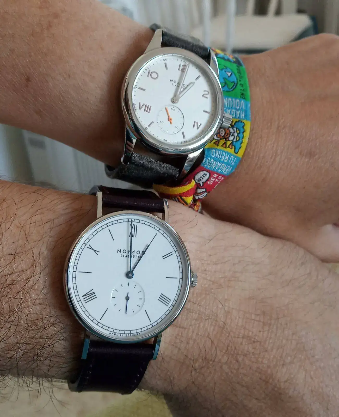 Cena de hace unos años de dos parejas y llevábamos los mismos relojes, dos RLX explorer ellas y Zenith striking10 nosotros, lástima que la foto sea tan mal....