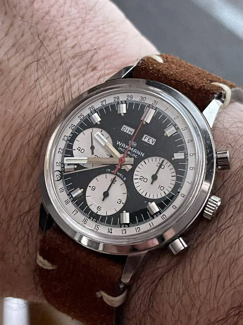 Cronógrafo con trotadora naranja.