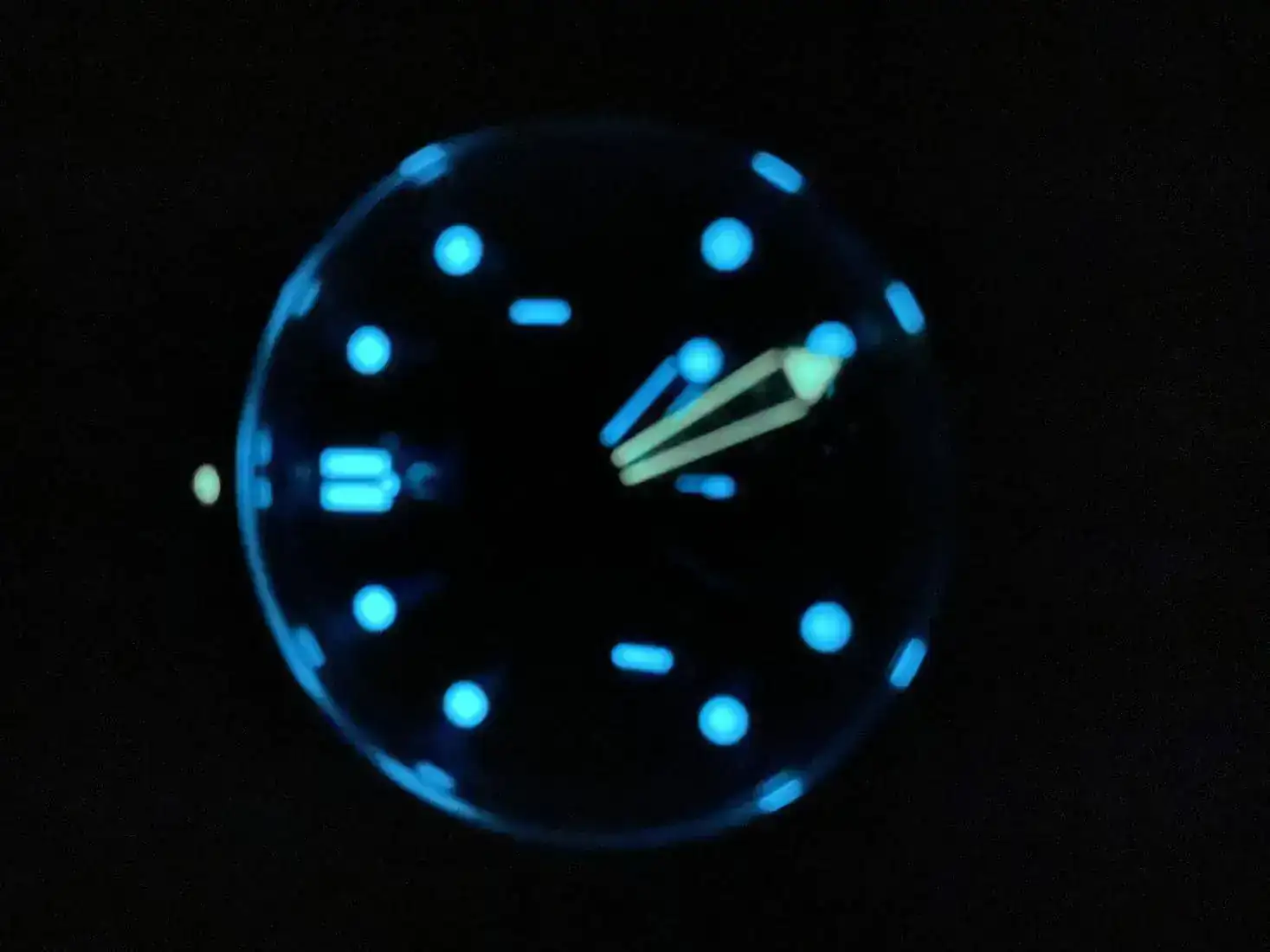 Es verde.Gracias, tienen luminova azul?.No he podido encontrar fotos de los azules de noche. Mi Tortuga lleva verde, es un NInja en PVD de hace dos años