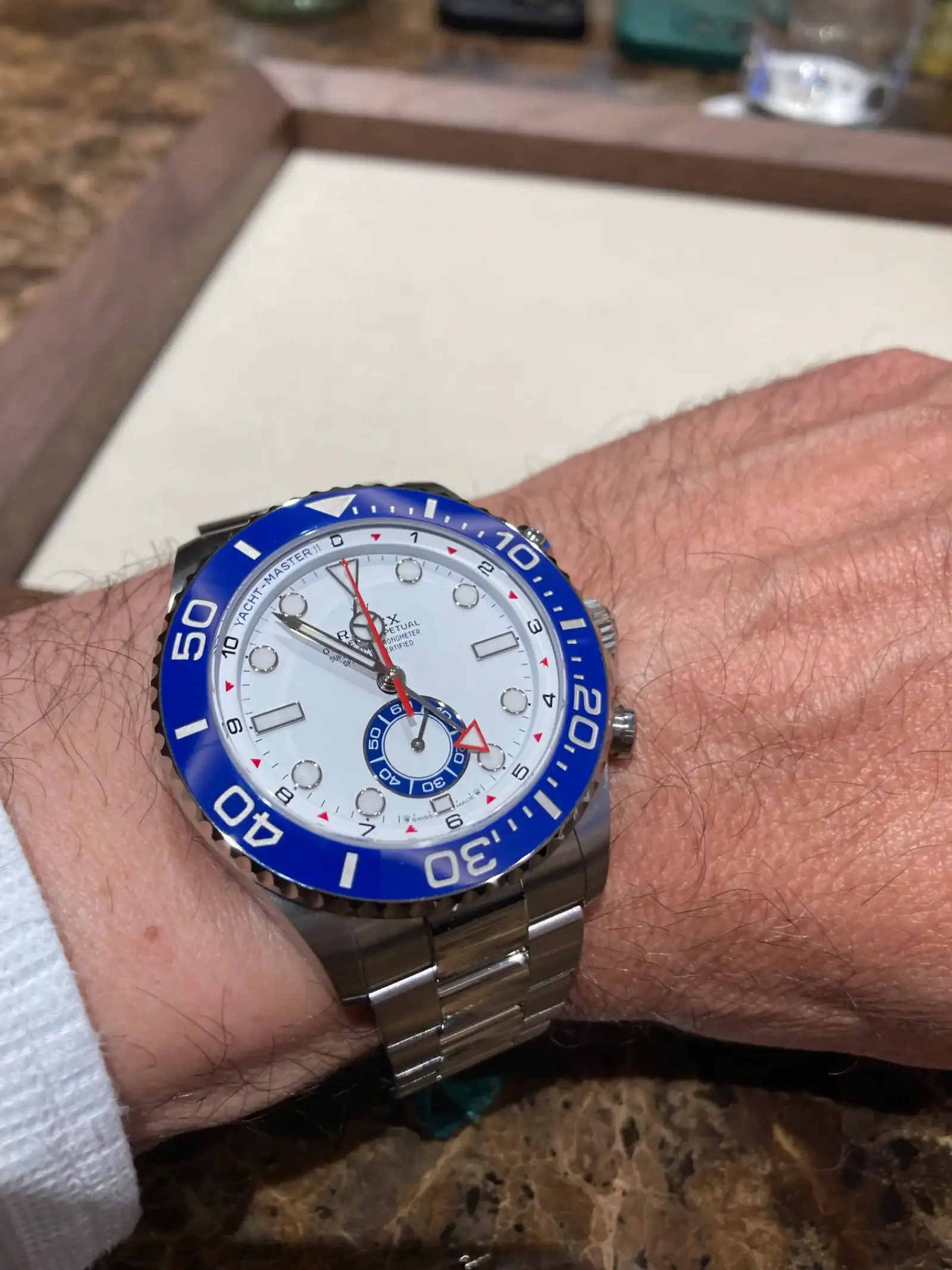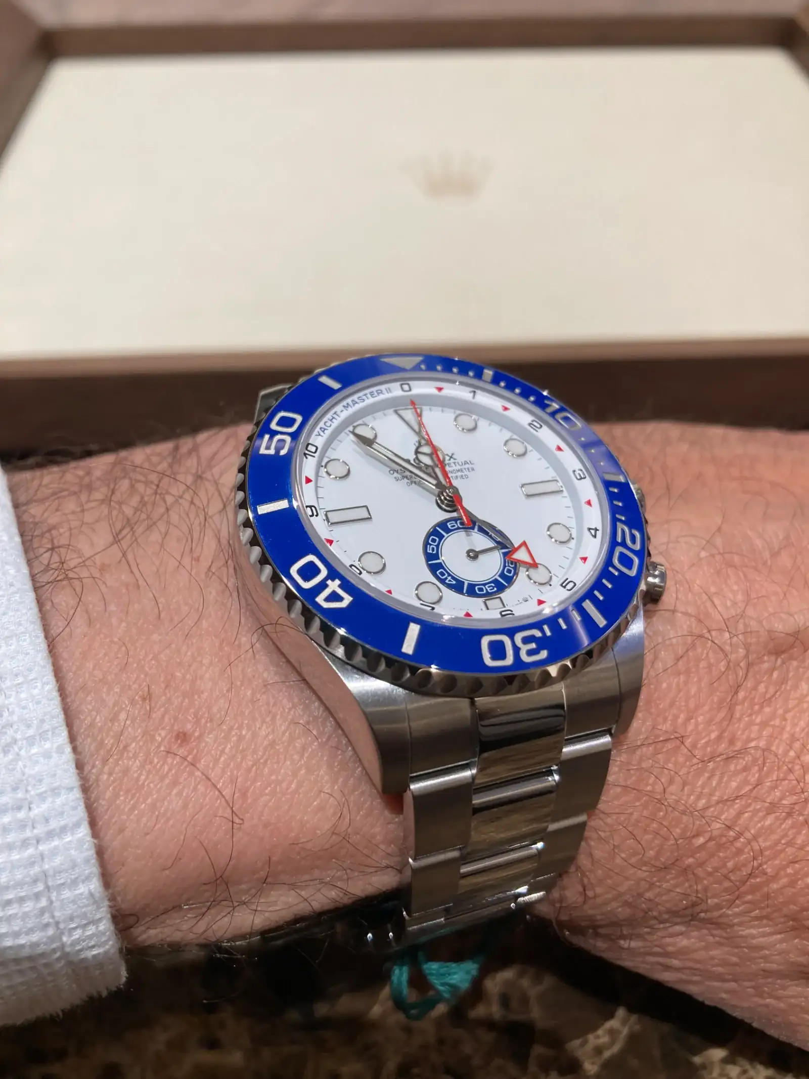 El Yacht MAster totalmente reconfigurado, tanto a nivel estético como -sobre todo- técnico. Es una delicia ver el cronógrafo funcionando hacia atrás. Si os fijáis en los pulsadores, tienen forma de “winch”, las correderas para pasar los cabos en los barcos.