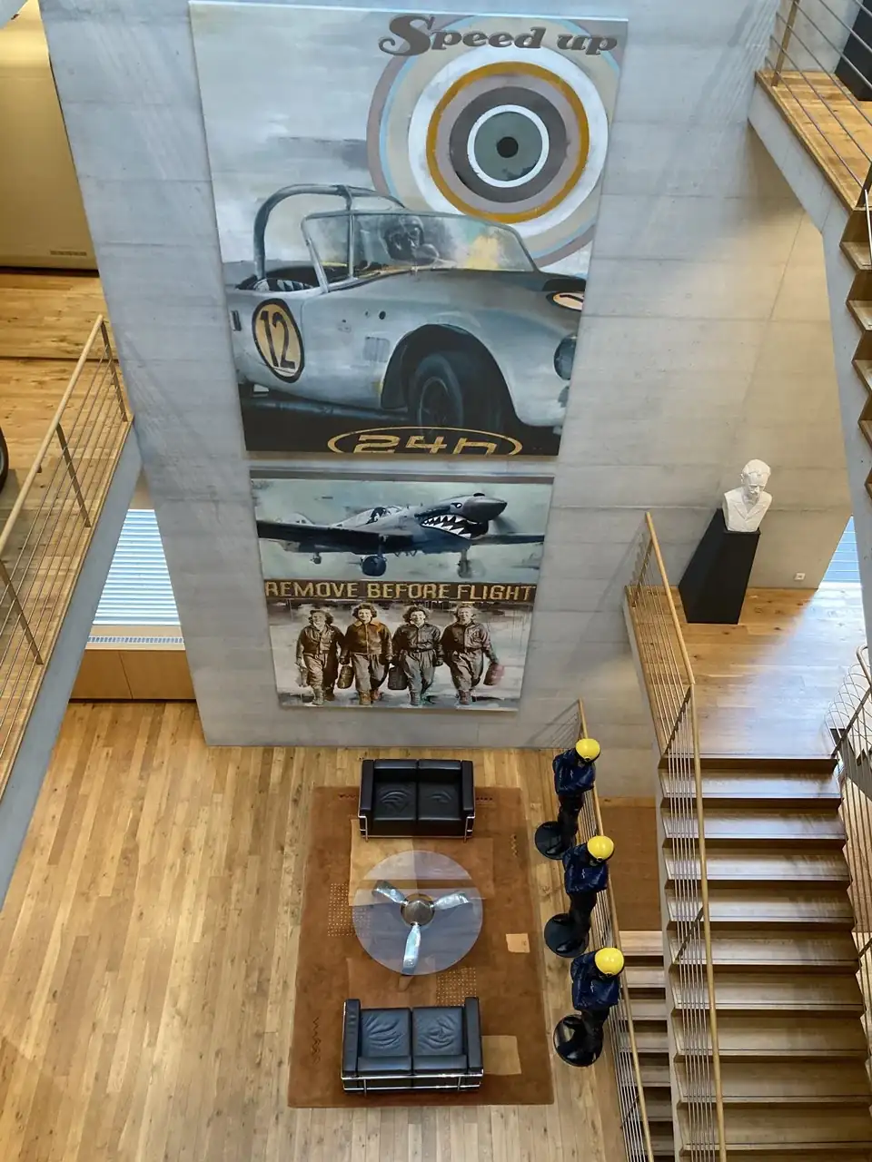 Un busto de Leon Breitling preside la entrada, mientras que un trío de pilotos te da la bienvenida en el hall principal. Seguramente a @wantedwatch le sonarán de algo...