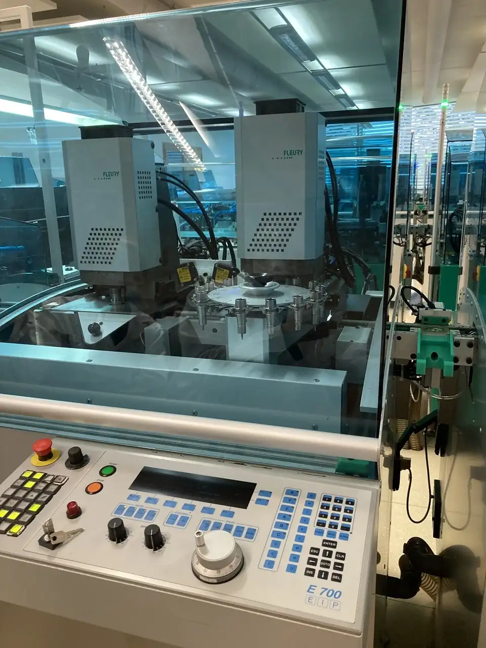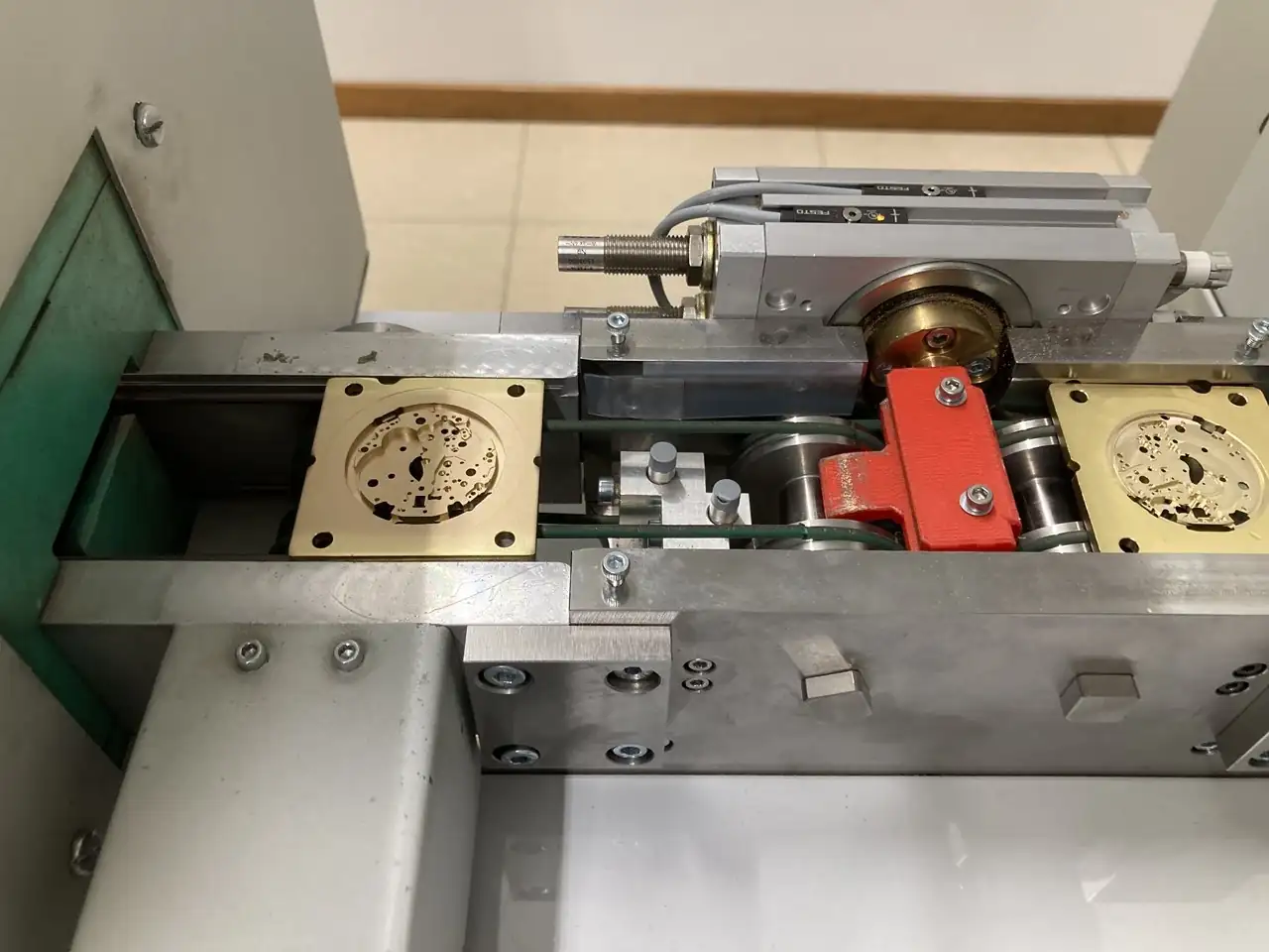 Este proceso sí está completamente automatizado (de hecho, pueden funcionar 24/7) y se basa en grupos de máquinas con distintas fresas que toman la placa en bruto en un lado y depositan la pieza semi terminada en el otro extremo. Por abundar: Breitling está usando esta tecnología oil-free desde hace quince años, y ha animado a la empresa que se lo desarrolló a venderla a otras relojeras para mejorar el medio ambiente.